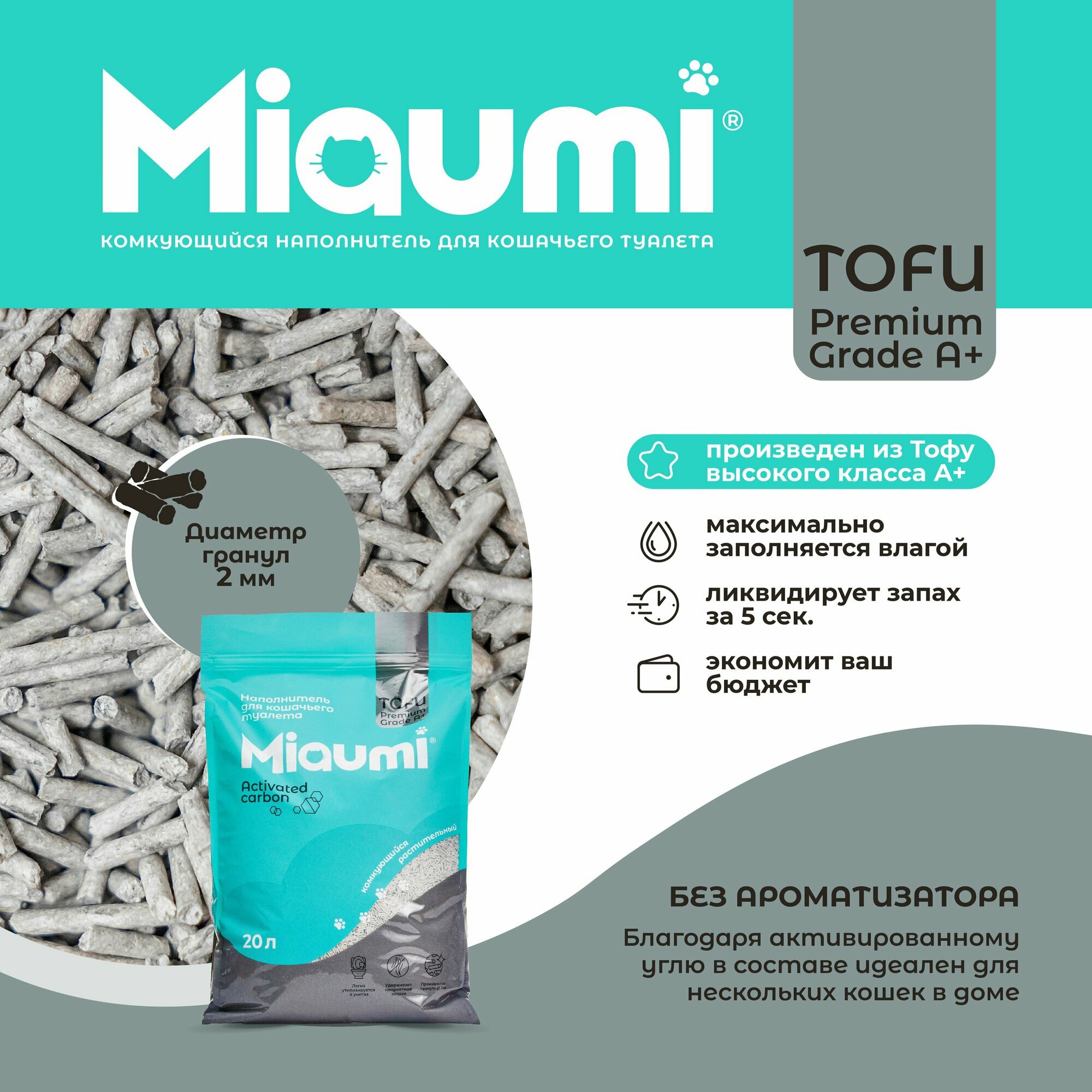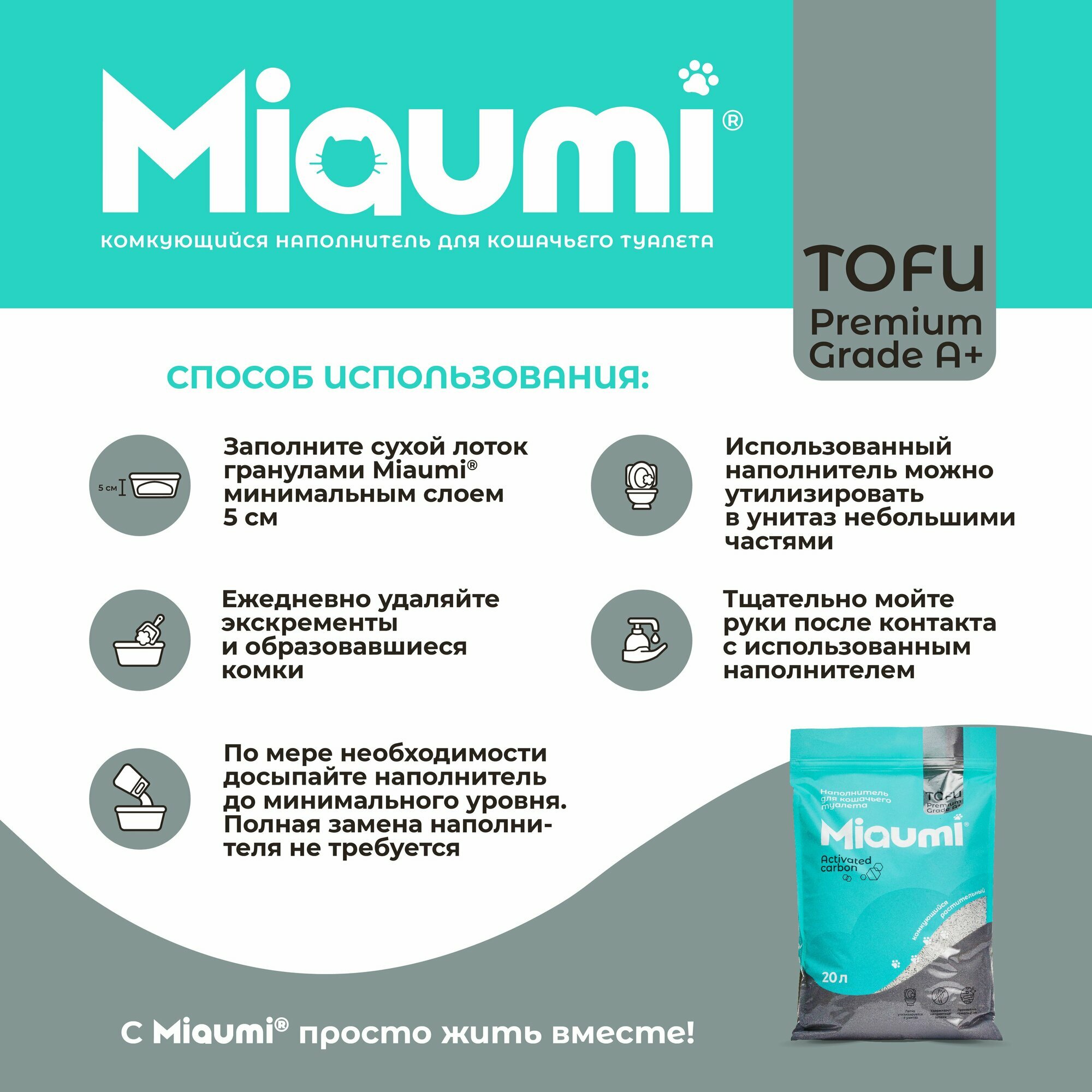 Купить Мяуми Miaumi TOFU Activated Carbon Unscented Комкующийся наполнитель для кошачьего туалета растительный/Тофу, с активированным углем 20л