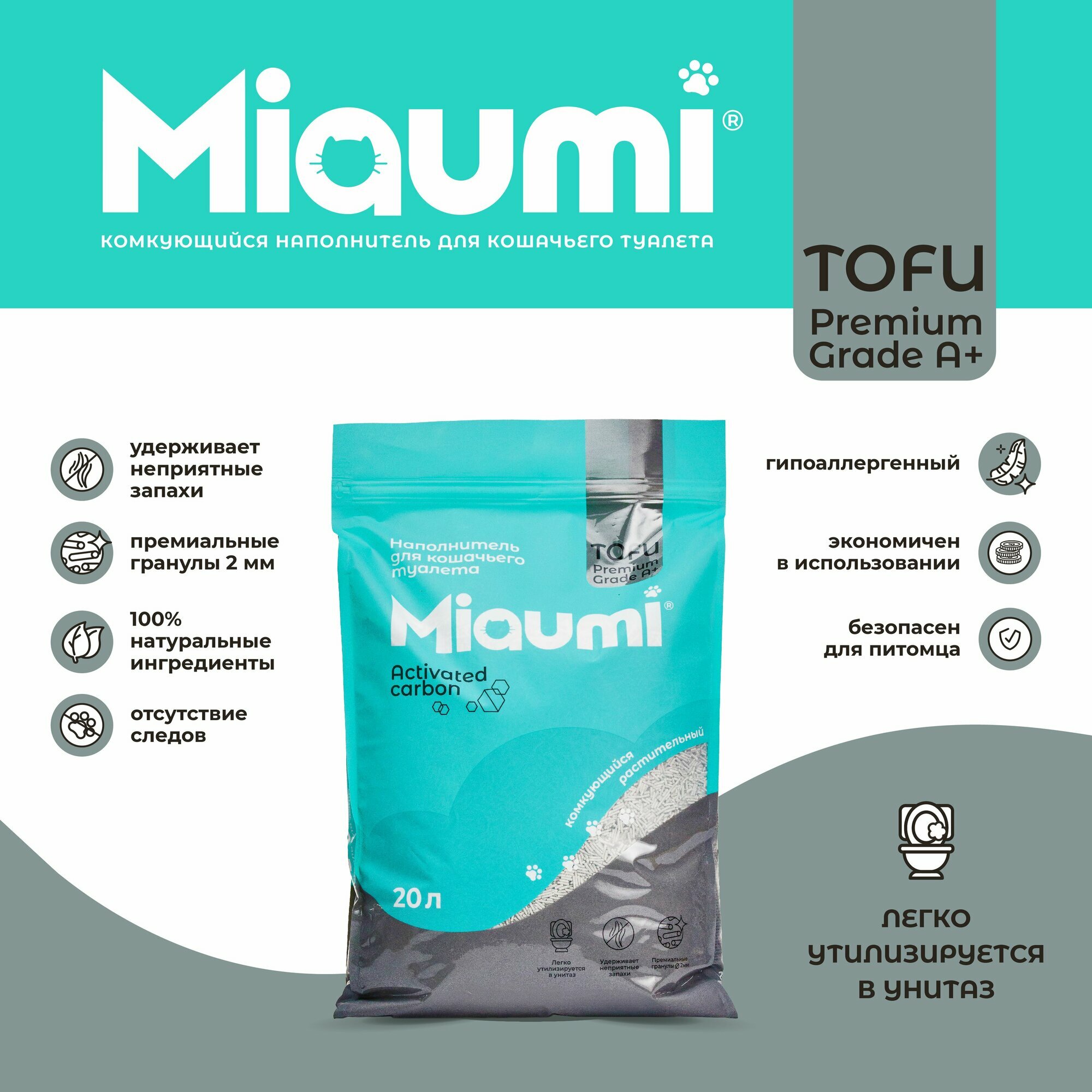 Ниже Вы можете прочитать отзывы на Мяуми Miaumi TOFU Activated Carbon Unscented Комкующийся наполнитель для кошачьего туалета растительный/Тофу, с активированным углем 20л, ознакомится с подробными характеристиками, посмотреть интересные обзоры и фотографии на Мяуми Miaumi TOFU Activated Carbon Unscented Комкующийся наполнитель для кошачьего туалета растительный/Тофу, с активированным углем 20л.