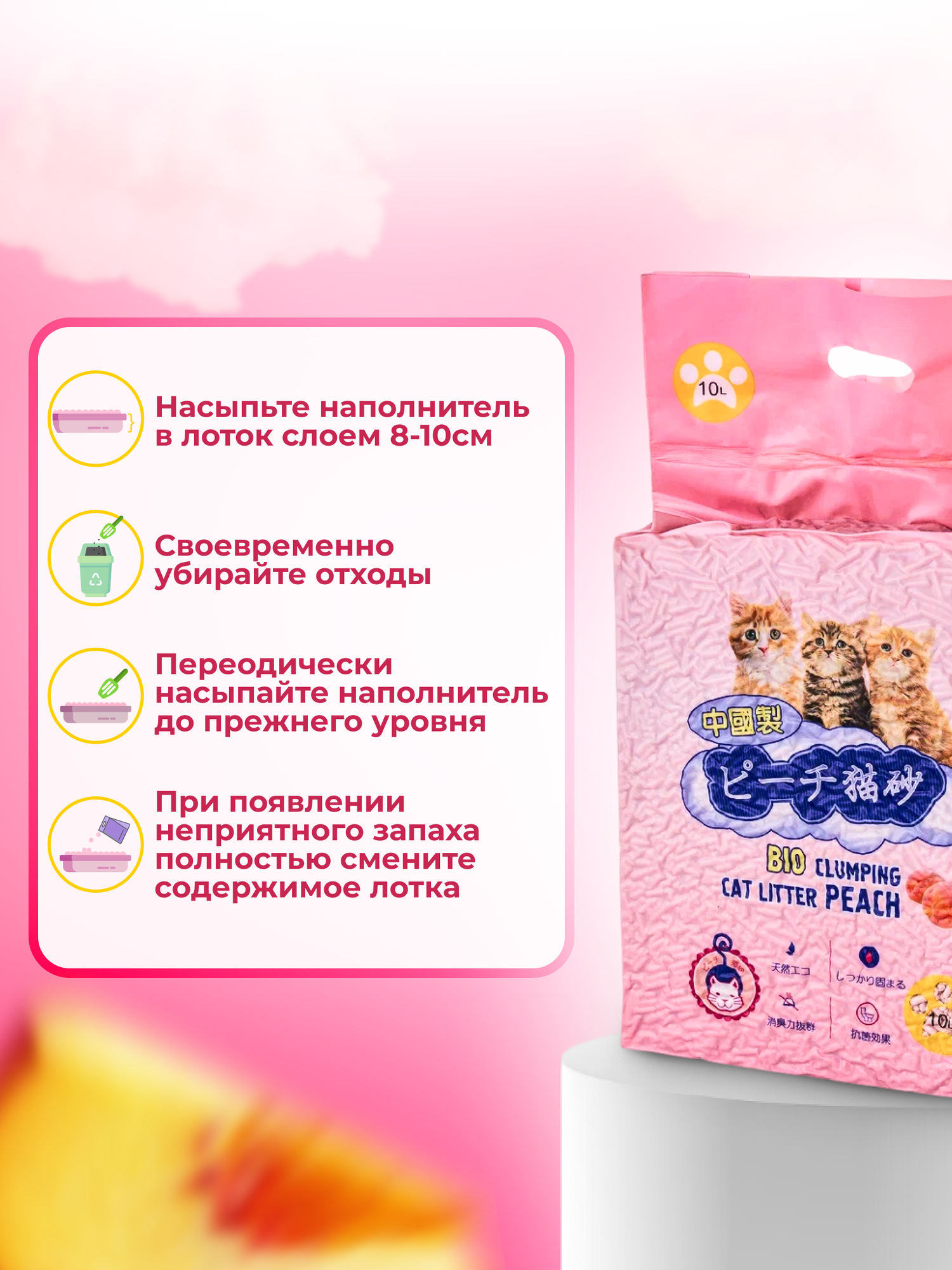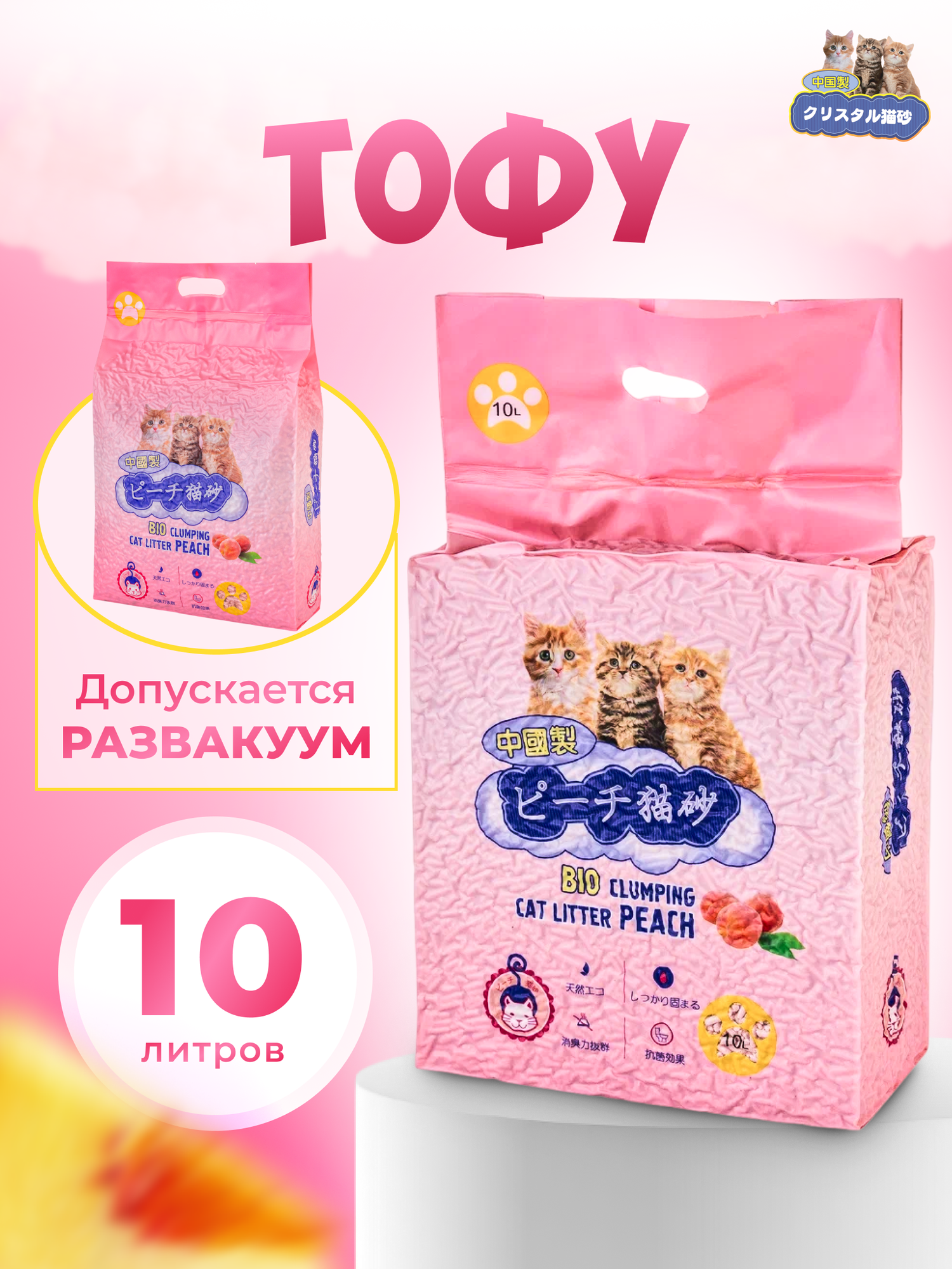 СохранитьНаполнитель для кошачьего туалета 10л Персик HAKASE AREKKUSU ТОФУ комкующийся интересное:
