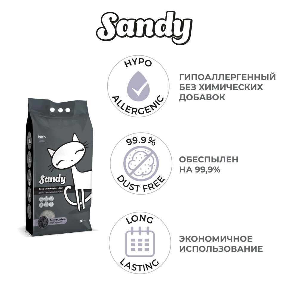 Наполнитель SANDY Active Carbon бентонитовый комкующийся с активированным углем для кошачьего туалета 5 кг