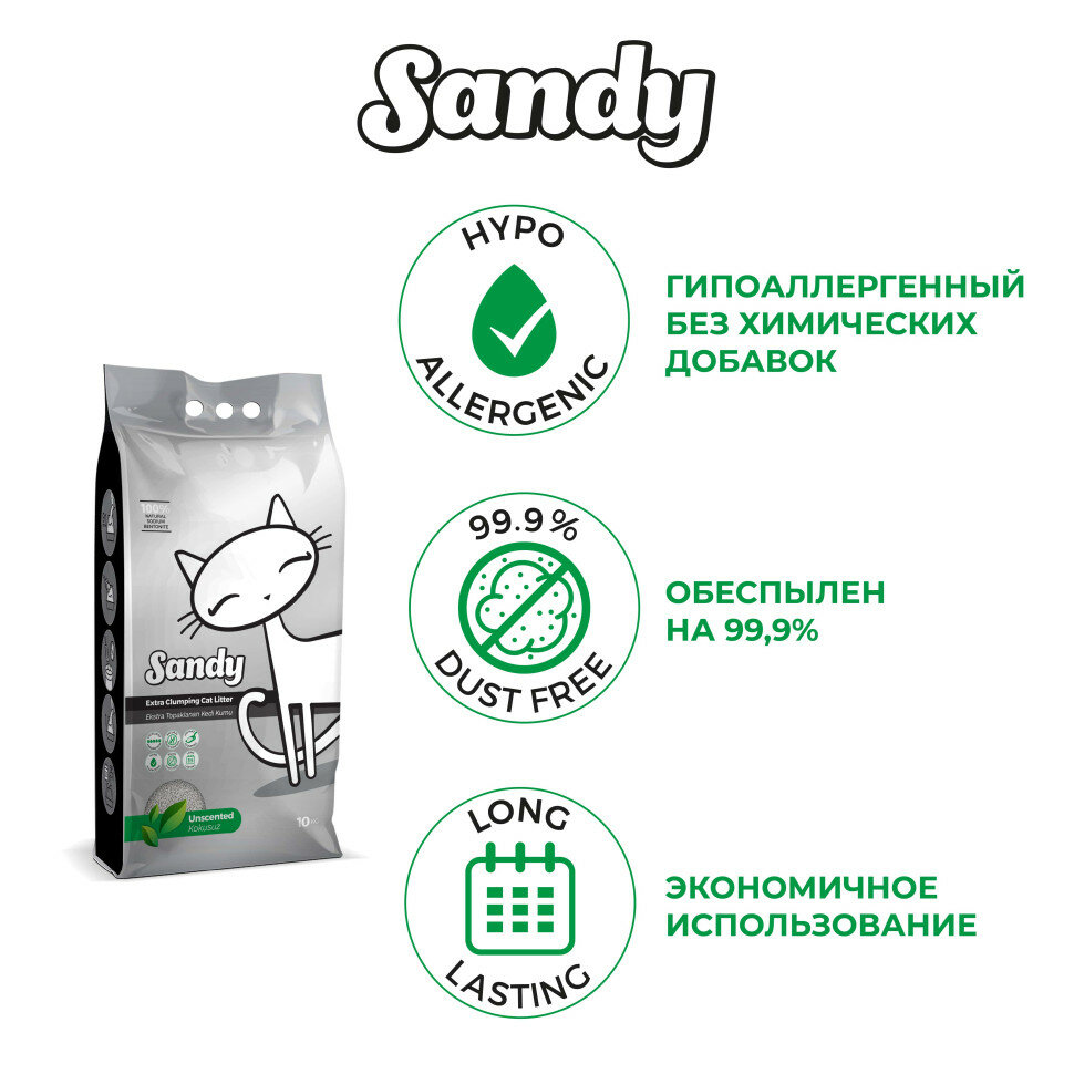 Наполнитель для кошек Sandy Unscented комкующийся, без ароматизатора 10 кг