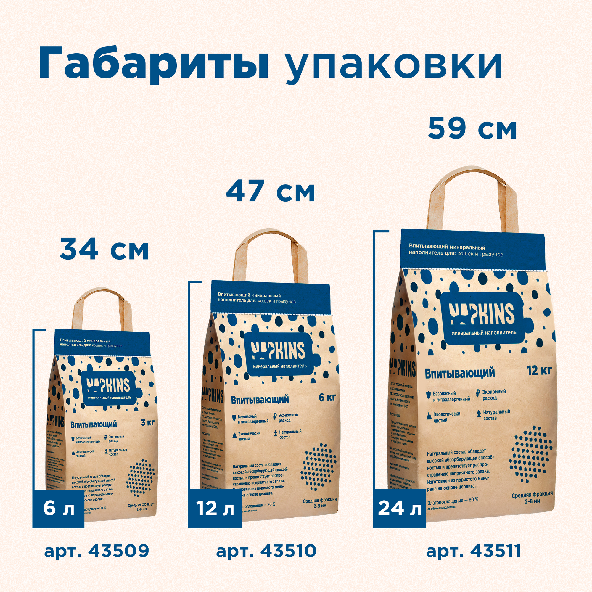 NAPKINS наполнитель впитывающий, 100% Натуральный, без пыли, 3 кг.