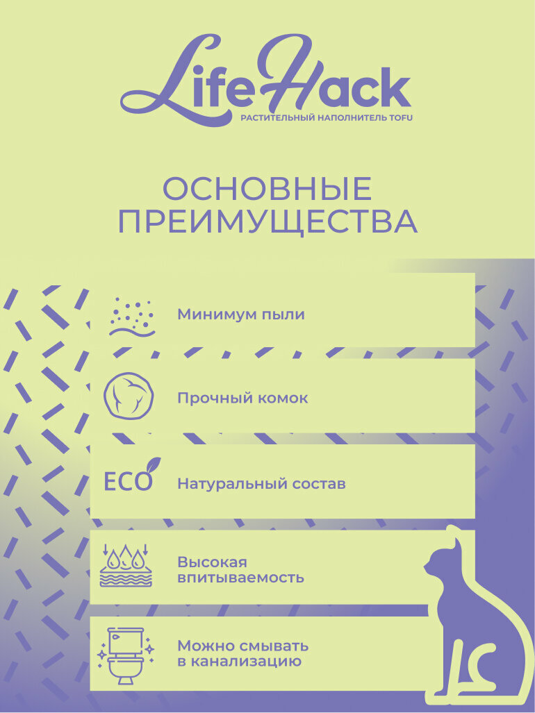 Комкующийся растительный наполнитель тофу Зелёный чай для кошачьего туалета LifeHack, 2,5кг интересное: