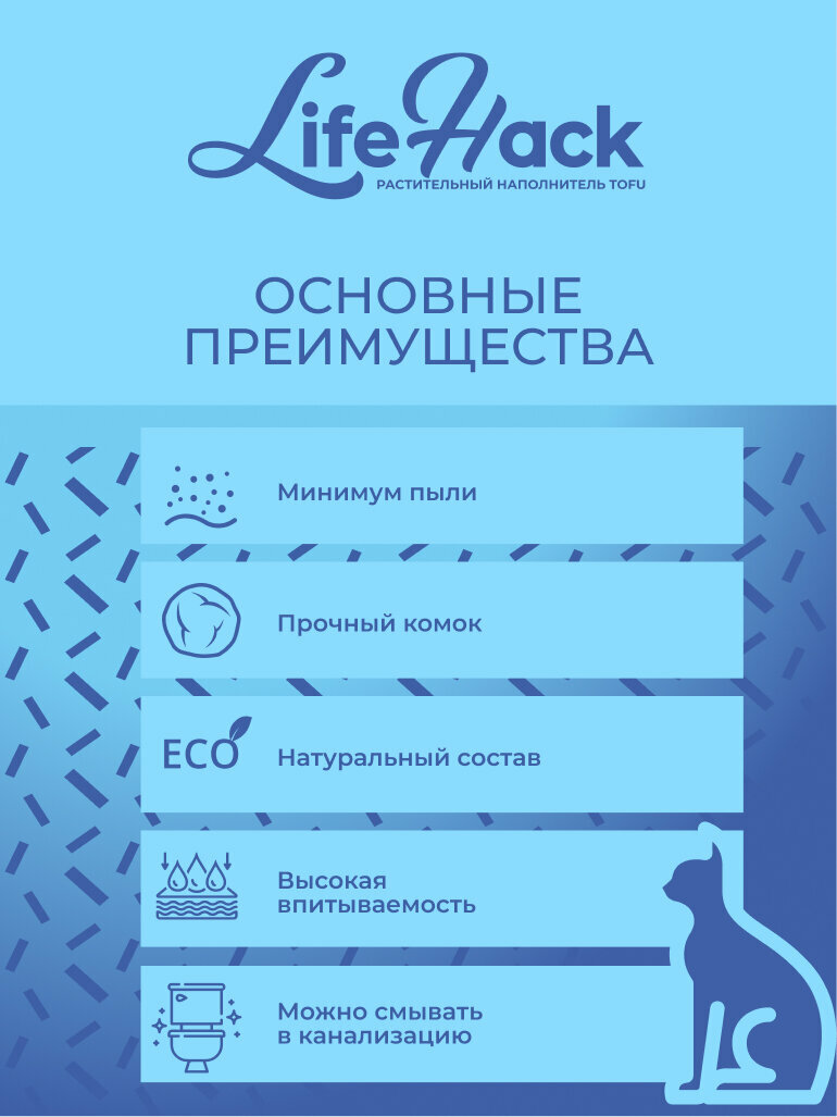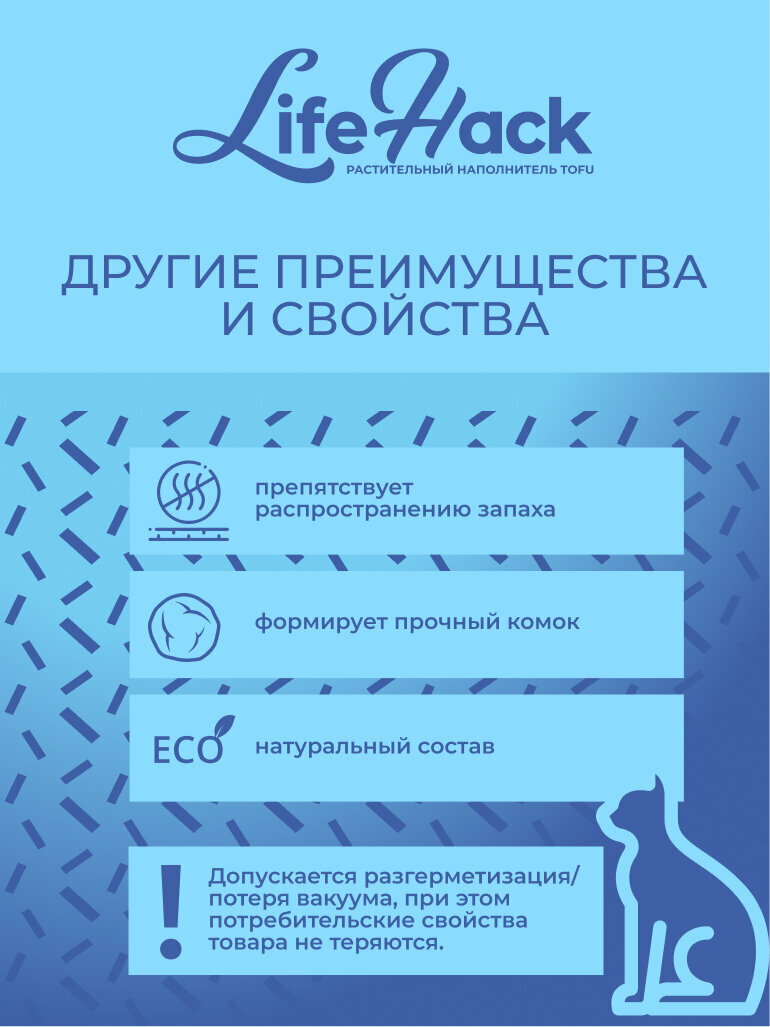 Комкующийся растительный наполнитель тофу Классический для кошачьего туалета LifeHack, 2,5кг интересное: