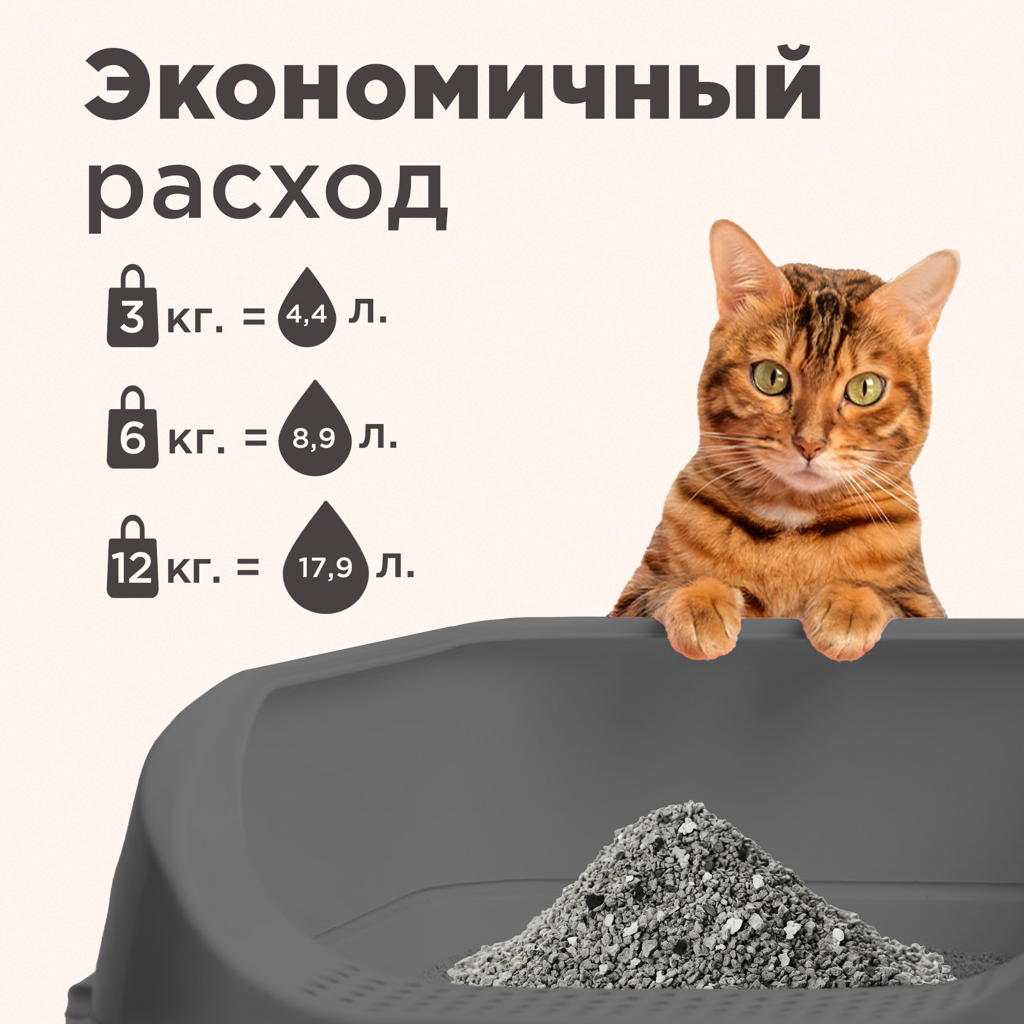 Комкующийся наполнитель, 100% Натуральный, без пыли, 6 л