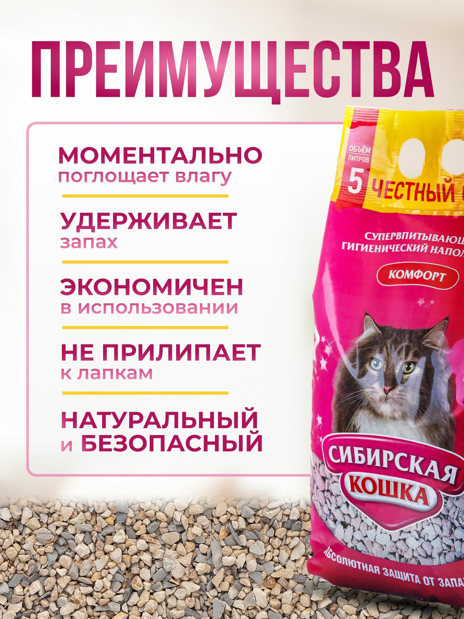 Наполнитель для кошачьего туалета 5л Комфорт сибирская кошка впитывающий, опока 3-6мм интересное: