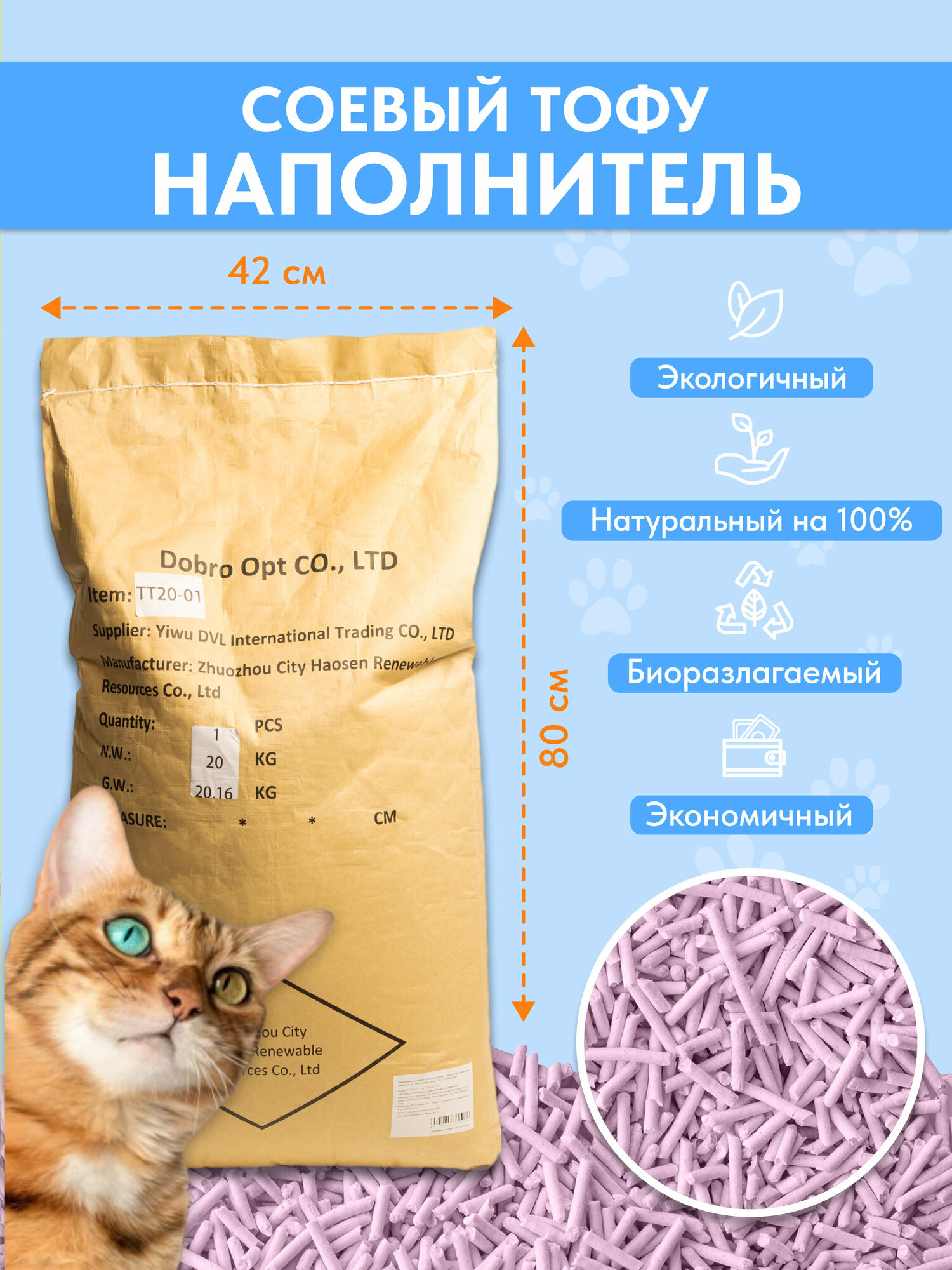 СохранитьНаполнитель для кошачьего туалета, TOOCATTISH, Лаванда, 20 кг, 48 л, тофу, комкующийся, соевый, смываемый интересное: