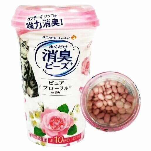 Купить Поглотитель запахов для кошачьего туалета Unicharm, шарики дезодорирующие, запах нежный цветочный, 450мл