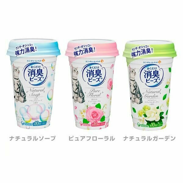Поглотитель запахов для кошачьего туалета Unicharm, шарики дезодорирующие, запах натурального мыла, 450мл