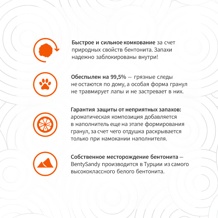 Купить BentySandy Orange наполнитель для кошачьего туалета комкующийся, глиняный, с ароматом апельсина - 5 л (4,35 кг)