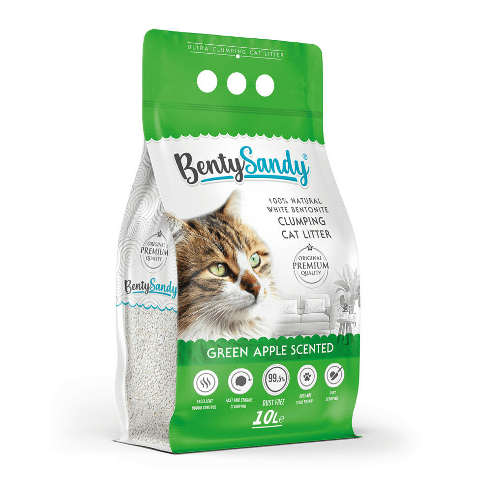 Купить BentySandy Green Apple наполнитель для кошачьего туалета комкующийся, глиняный, с ароматом зеленого яблока - 8,7 кг (10 л)