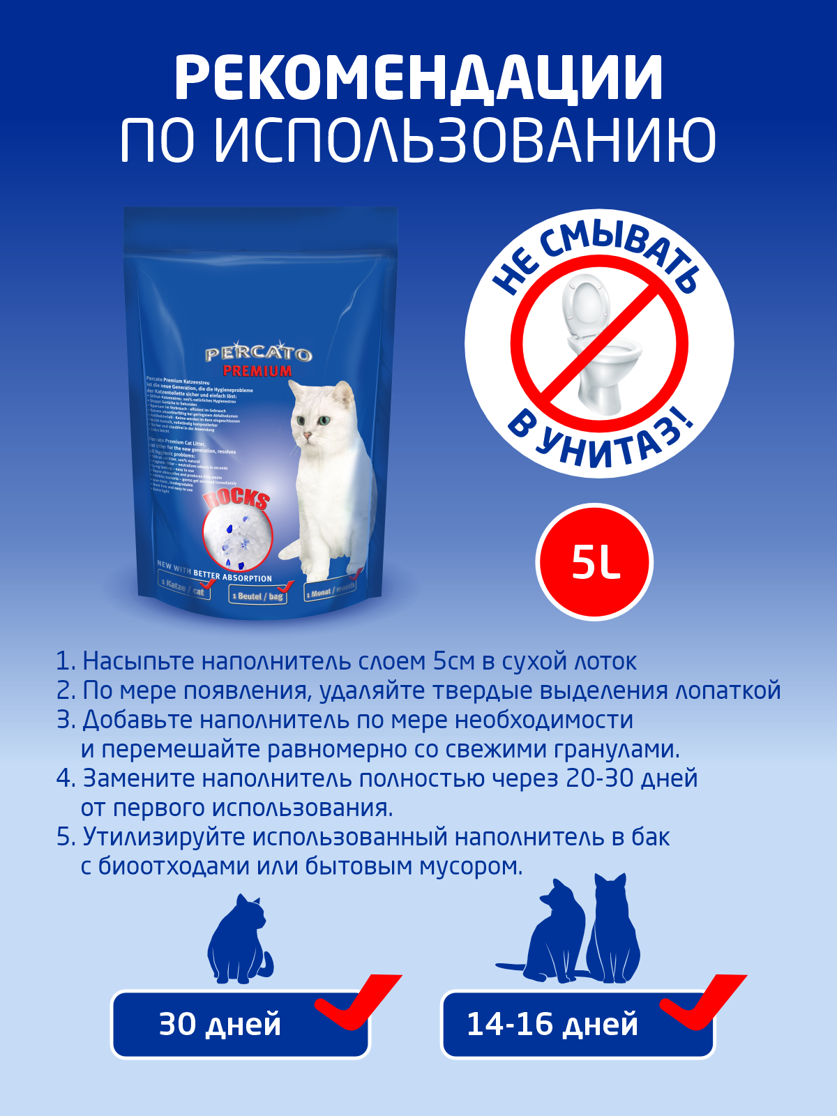 Премиум наполнитель Percato для кошачьего туалета силикагелевый 5 л интересное: