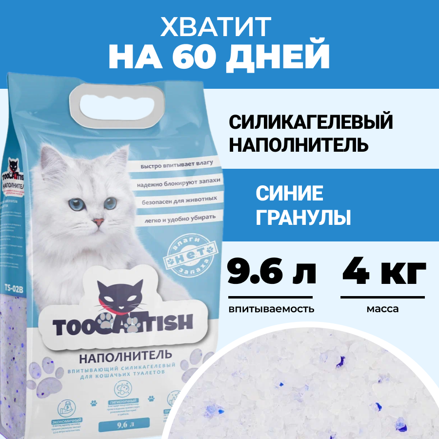 Наполнитель для кошачьего туалета, TOOCATTISH, Синие гранулы, 4 кг, 9.6 л, силикагелевый, впитывающий интересное: