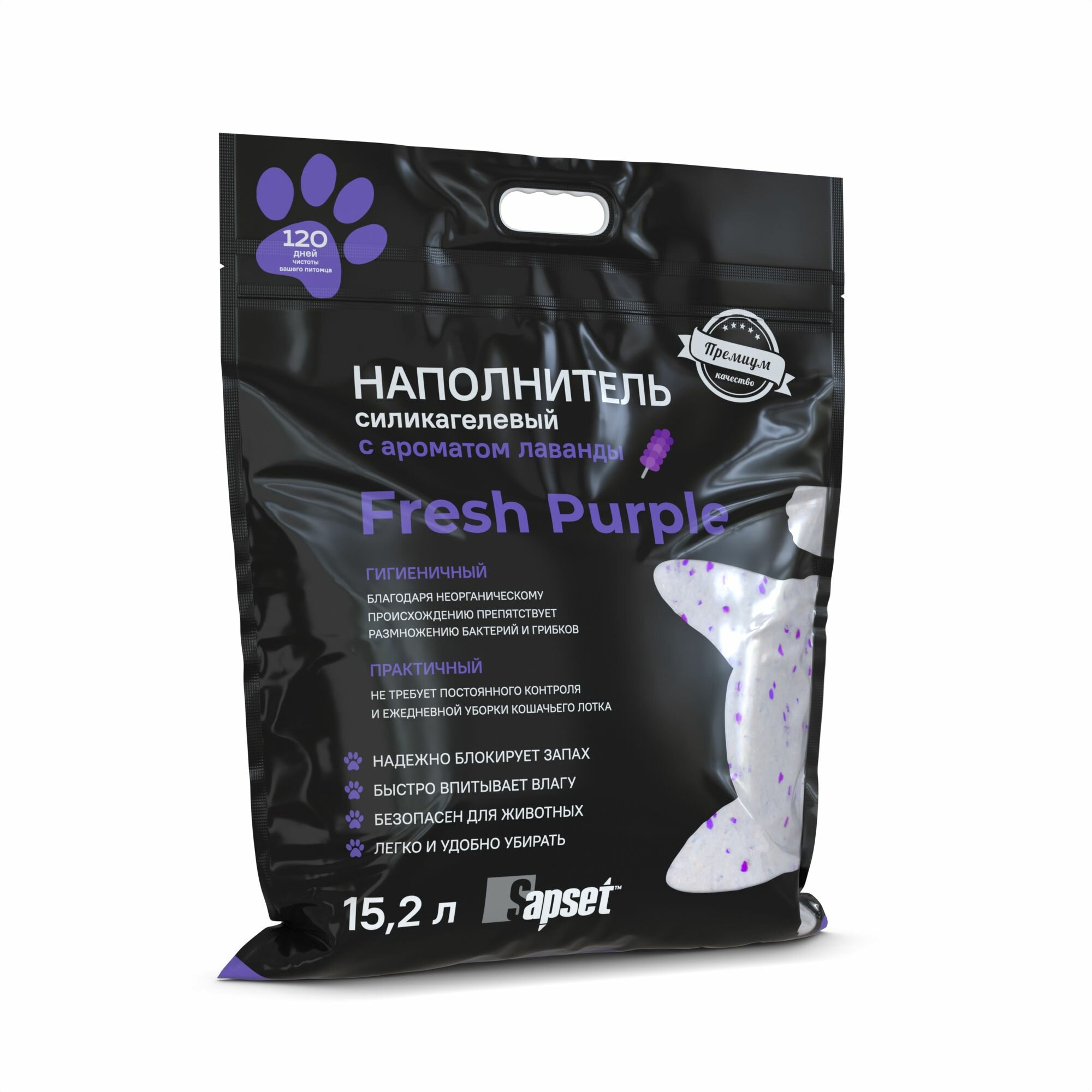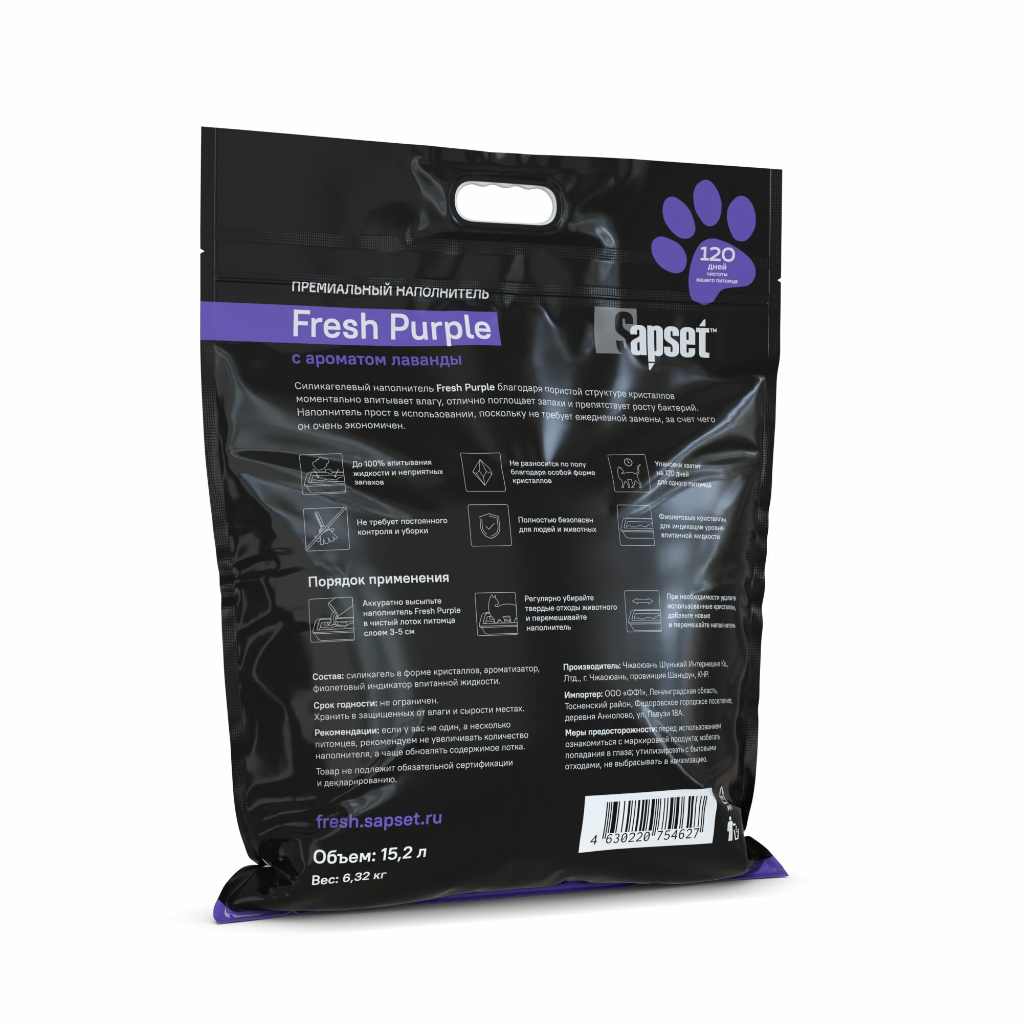 Купить Наполнитель для кошачьего туалета Sapset Fresh Purple силикагелевый, с ароматом лаванды, 15,2л