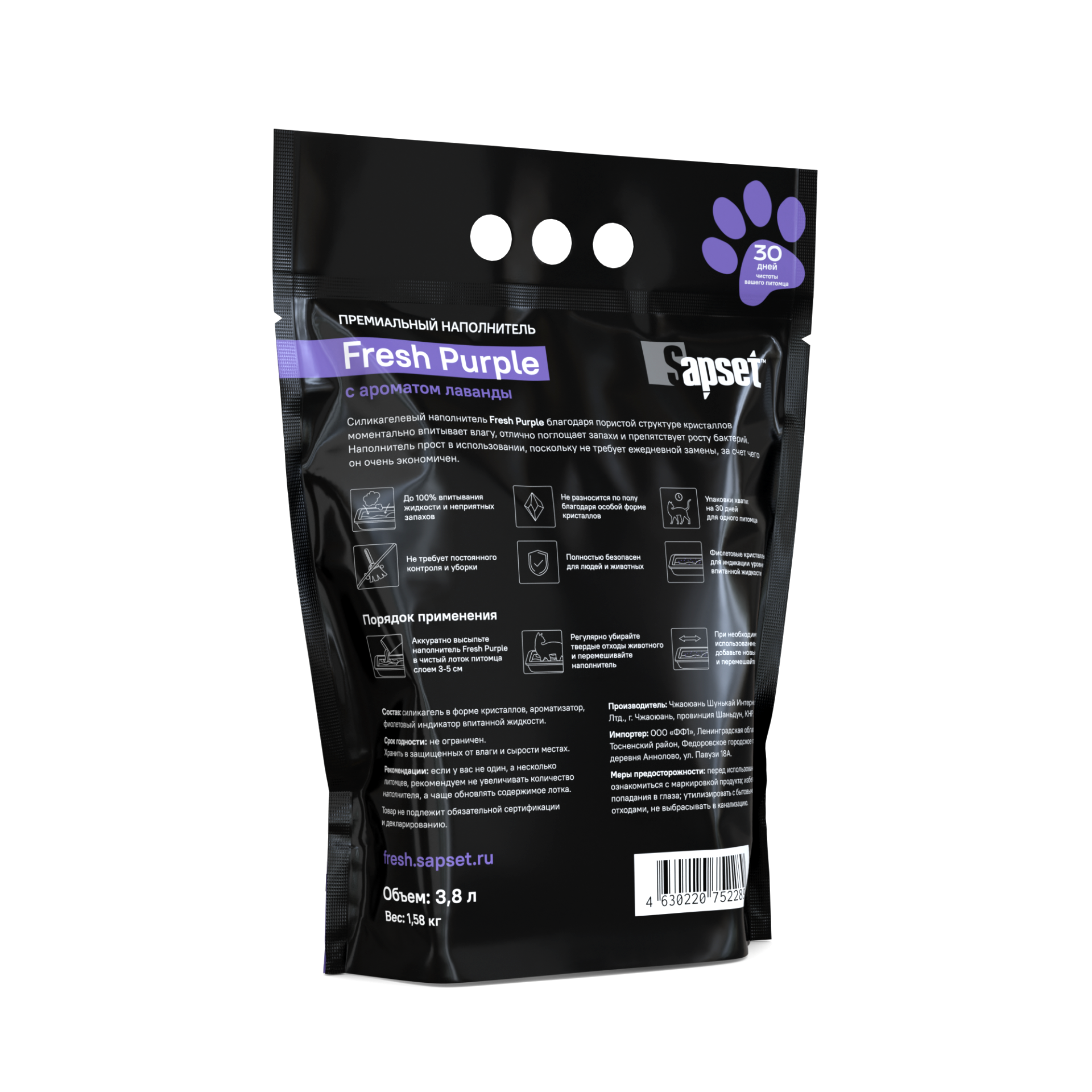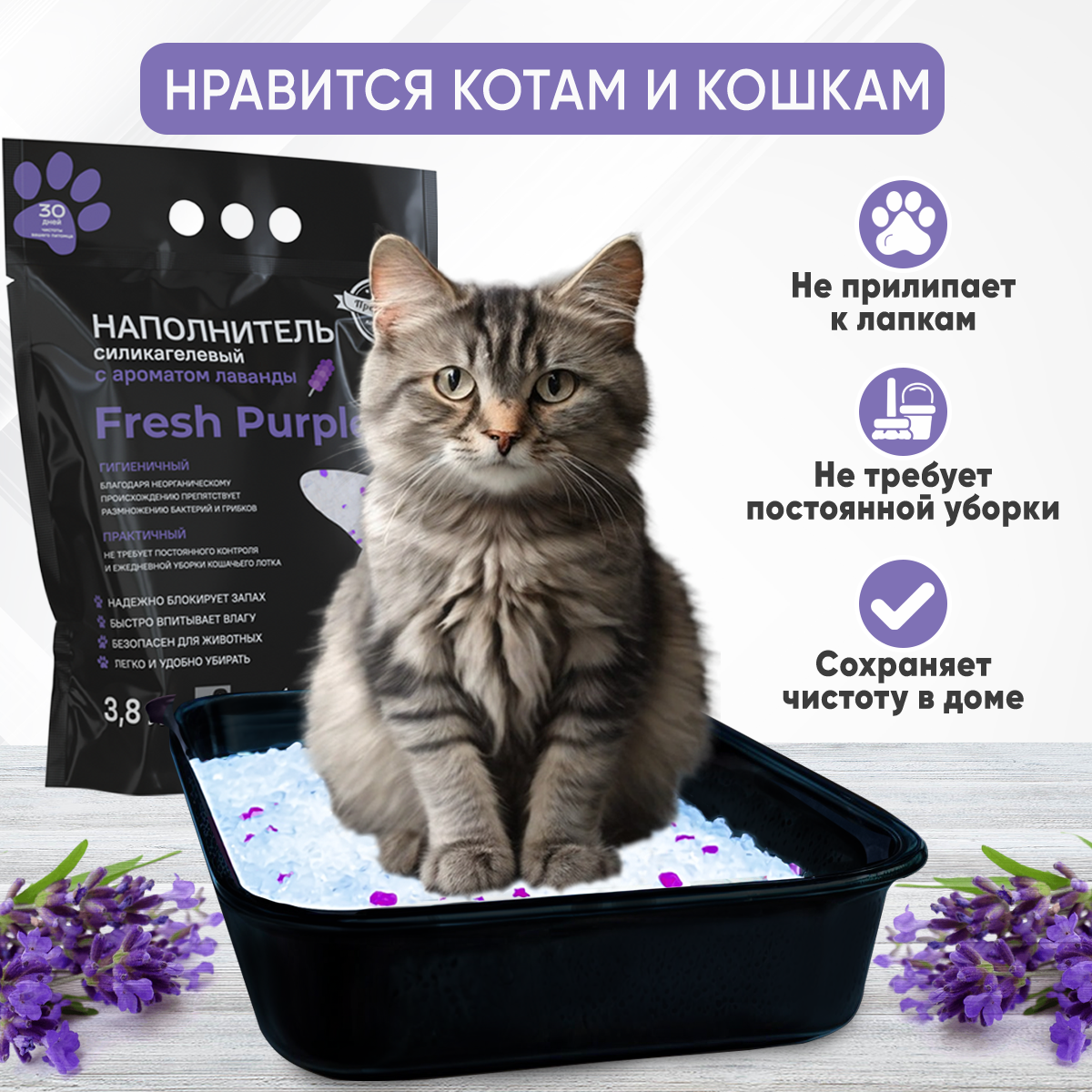 Наполнитель для кошачьего туалета Sapset Fresh Purple силикагелевый, с ароматом лаванды, 3,8л интересное: