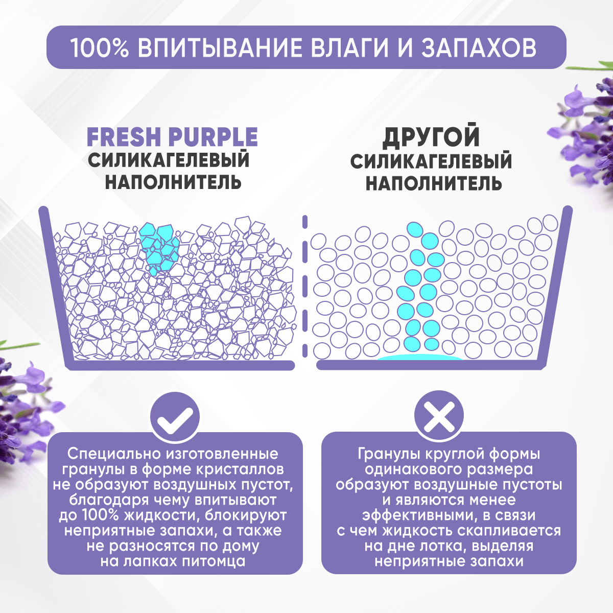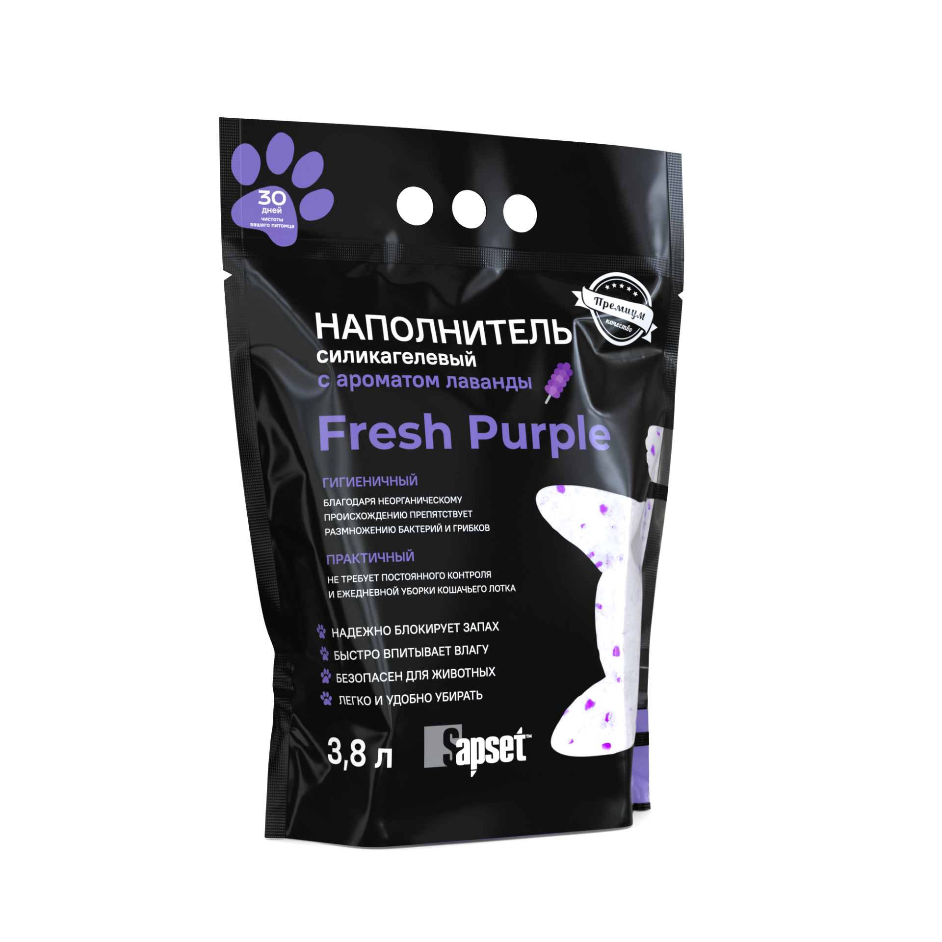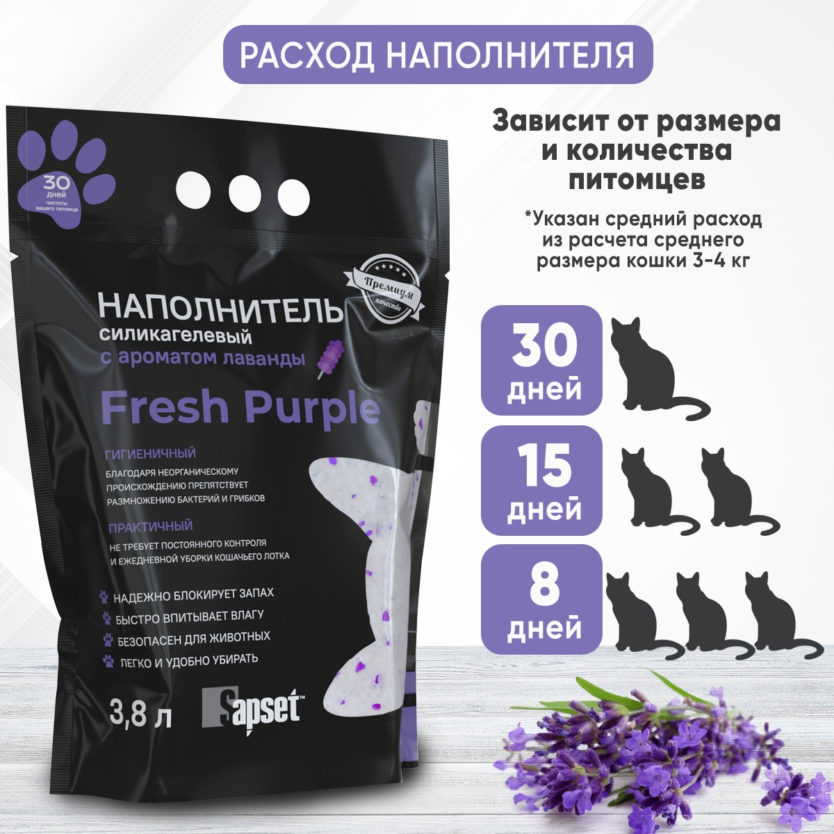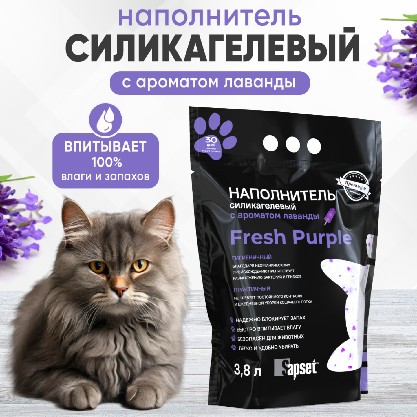 Купить Наполнитель для кошачьего туалета Sapset Fresh Purple силикагелевый, с ароматом лаванды, 3,8л