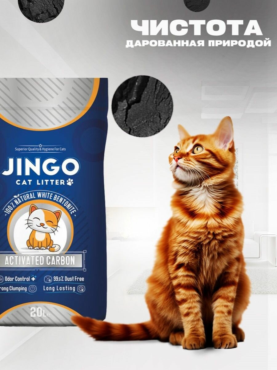 Купить Бентонитовый комкующийся наполнитель для кошек JINGO Активированный уголь, 20л/ 17,2 кг.