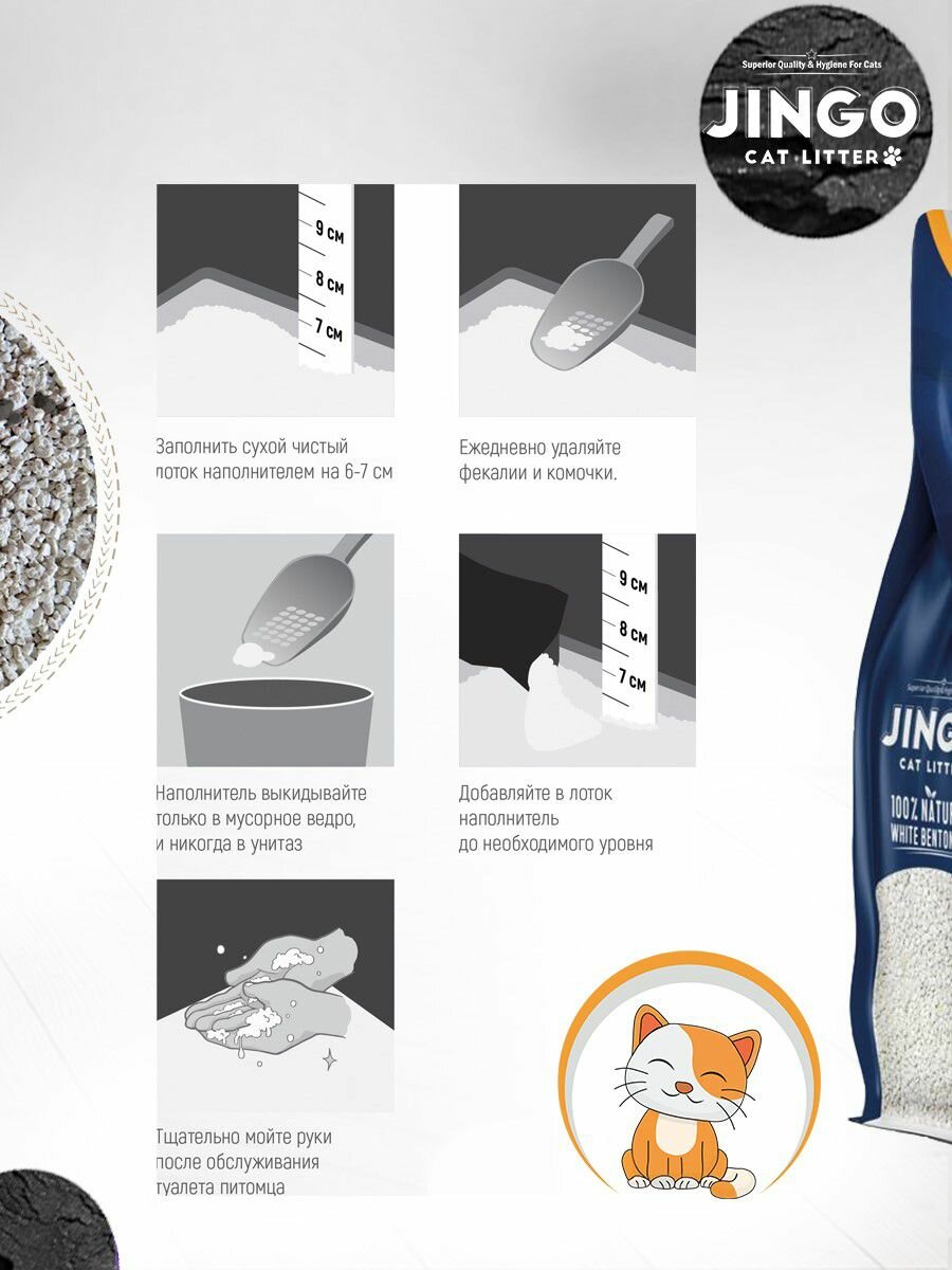 Бентонитовый комкующийся наполнитель для кошек JINGO Жасмин, 5л/ 4,35 кг.
