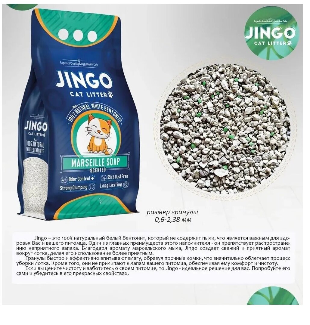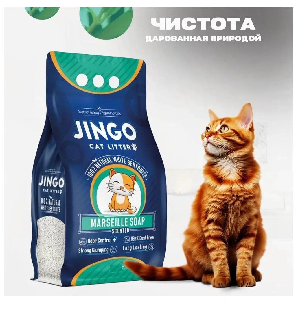 Купить Комкующийся наполнитель Jingo Marseille soap для кошачьего туалета с ароматом марсельского мыла 10л. (8.7 кг)