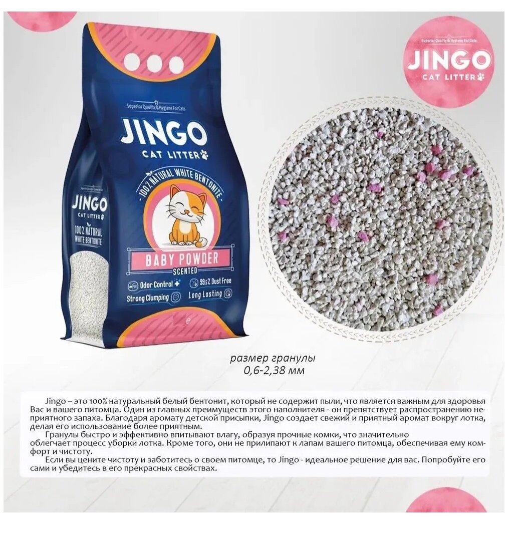 Купить Комкующийся наполнитель Jingo Baby Powder для кошачьего туалета с ароматом детской присыпки 10л. (8.7 кг)