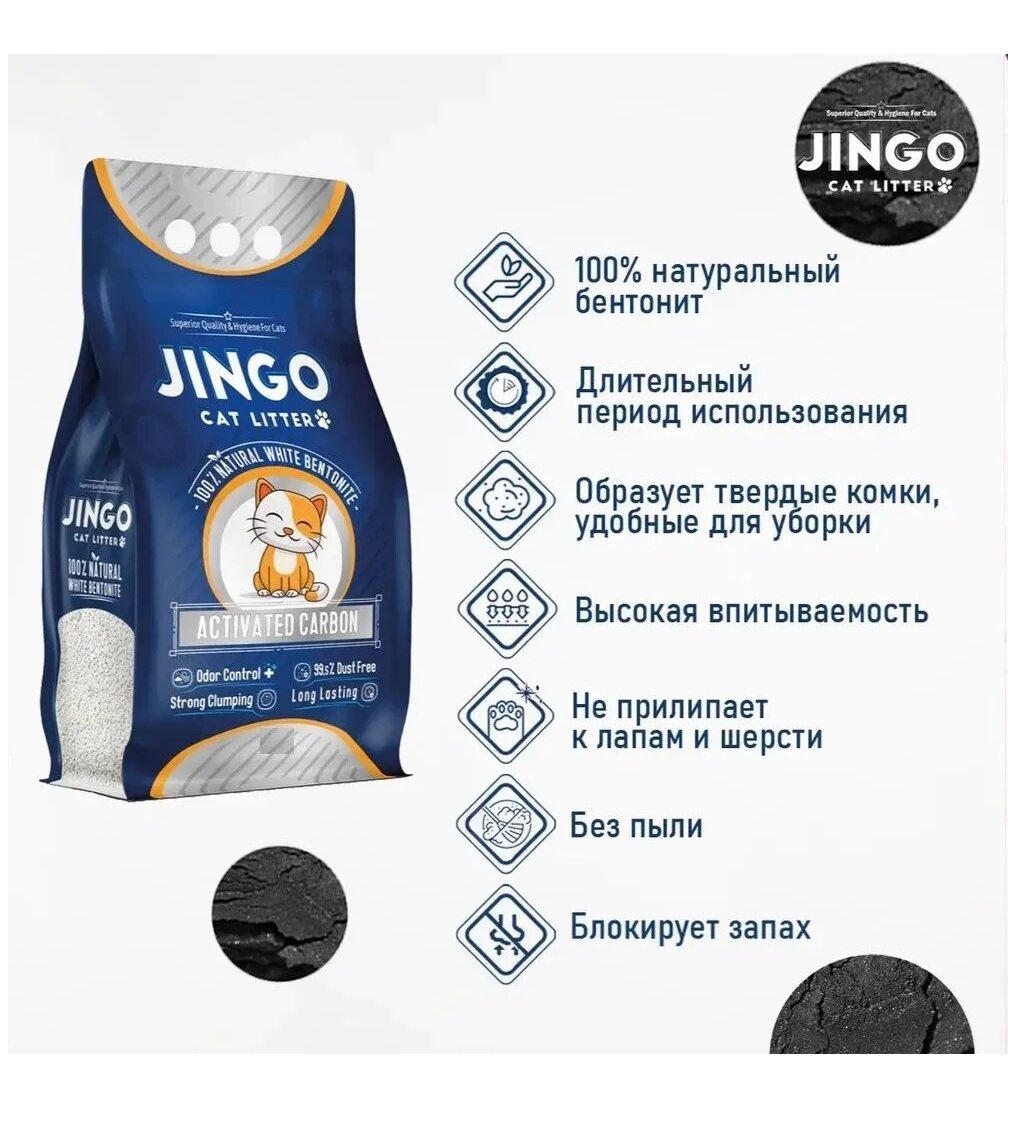 Ниже Вы можете прочитать отзывы на Комкующийся наполнитель Jingo Active Carbon для кошачьего туалета с активированным углем 10л. (8.7 кг), ознакомится с подробными характеристиками, посмотреть интересные обзоры и фотографии на Комкующийся наполнитель Jingo Active Carbon для кошачьего туалета с активированным углем 10л. (8.7 кг).
