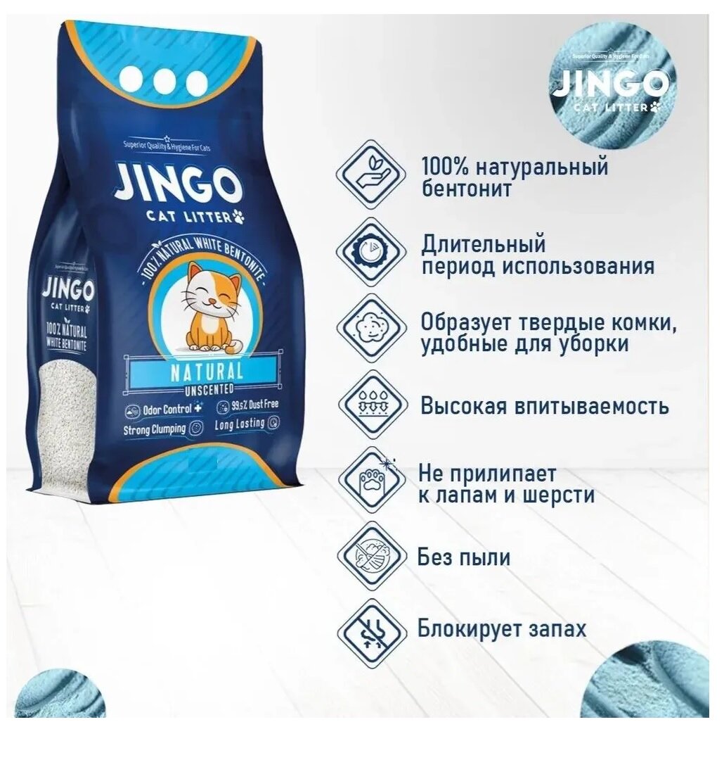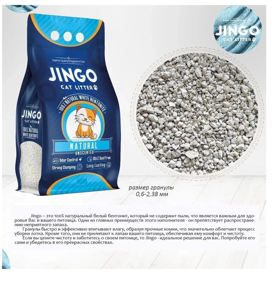 Бентонитовый комкующийся наполнитель для кошек JINGO Жасмин, 5л/ 4,35 кг.