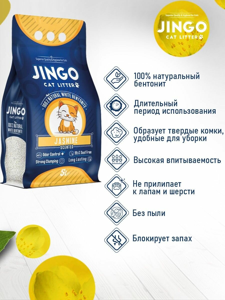 Купить Бентонитовый комкующийся наполнитель для кошек JINGO Жасмин, 5л/ 4,35 кг.