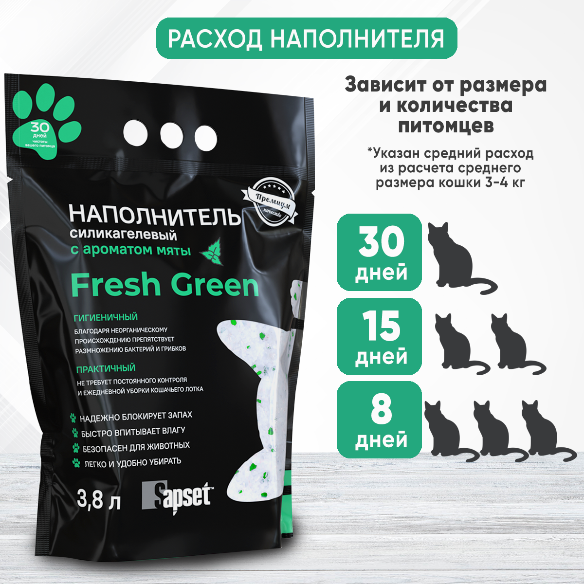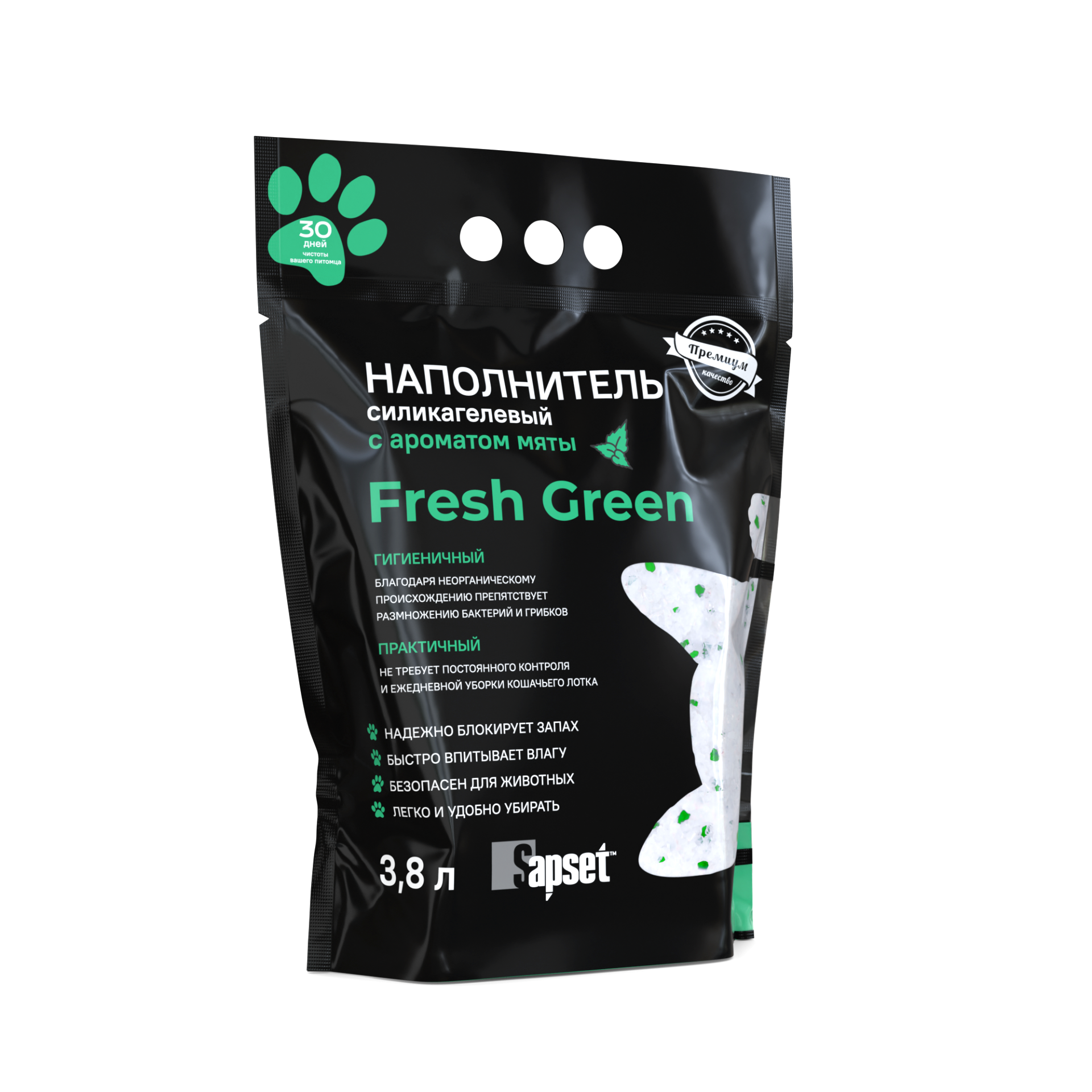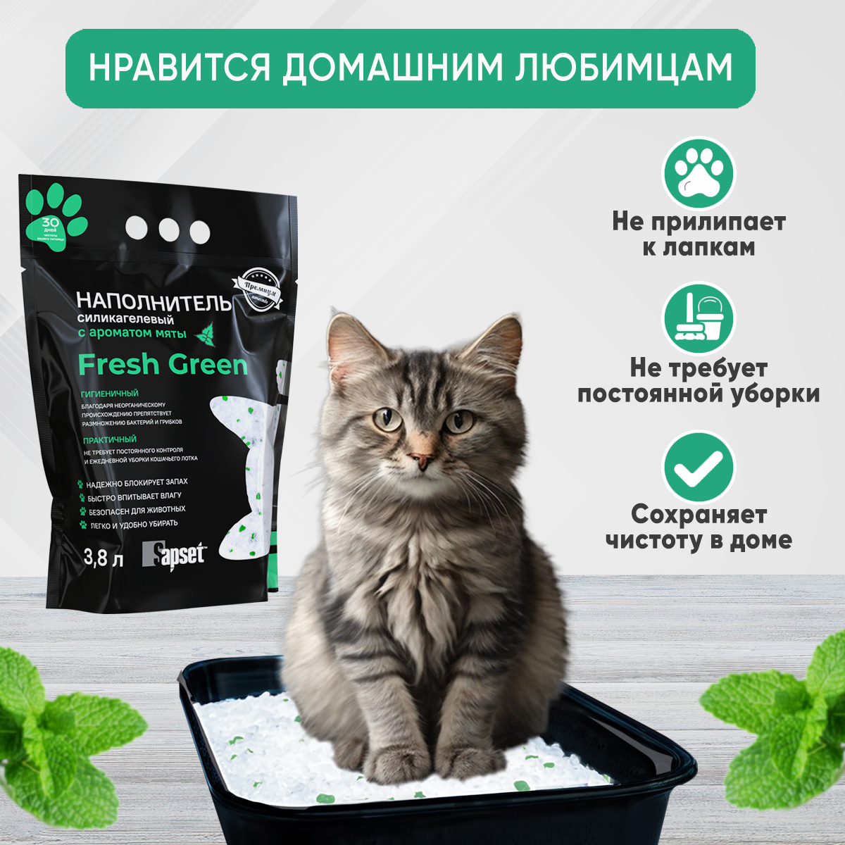 Купить Наполнитель для кошачьего туалета Sapset Fresh Green силикагелевый, с ароматом мяты, 3,8л