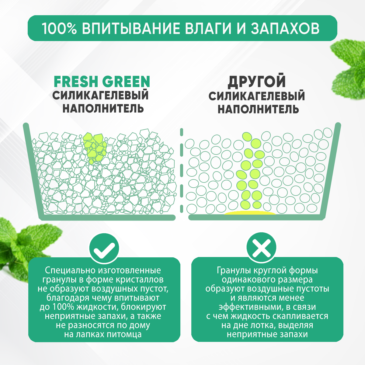 Наполнитель для кошачьего туалета Sapset Fresh Green силикагелевый, с ароматом мяты, 3,8л интересное: