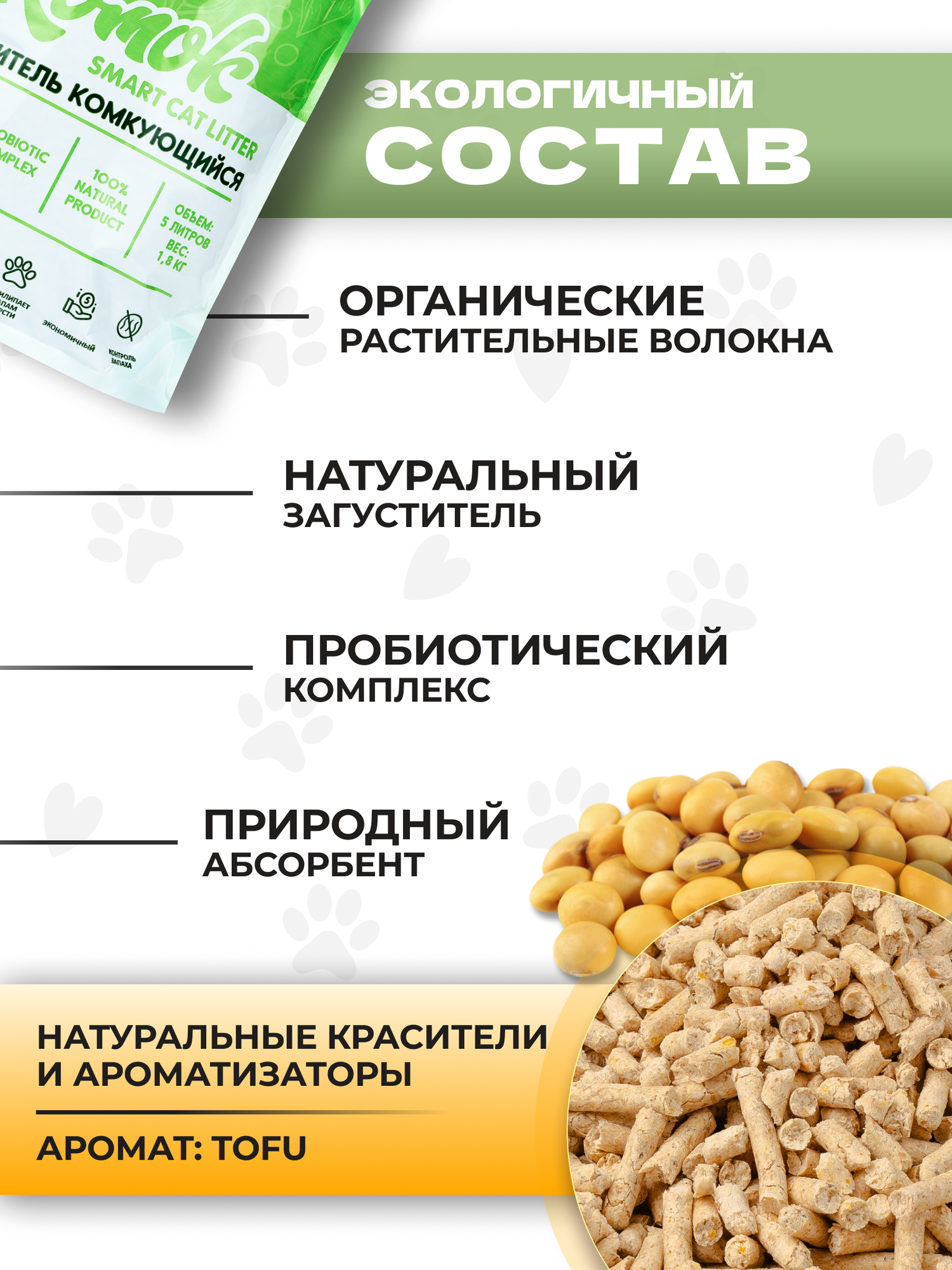 Купить Комкующийся биоразлагаемый наполнитель для лотков Комок TOFU 5 литров