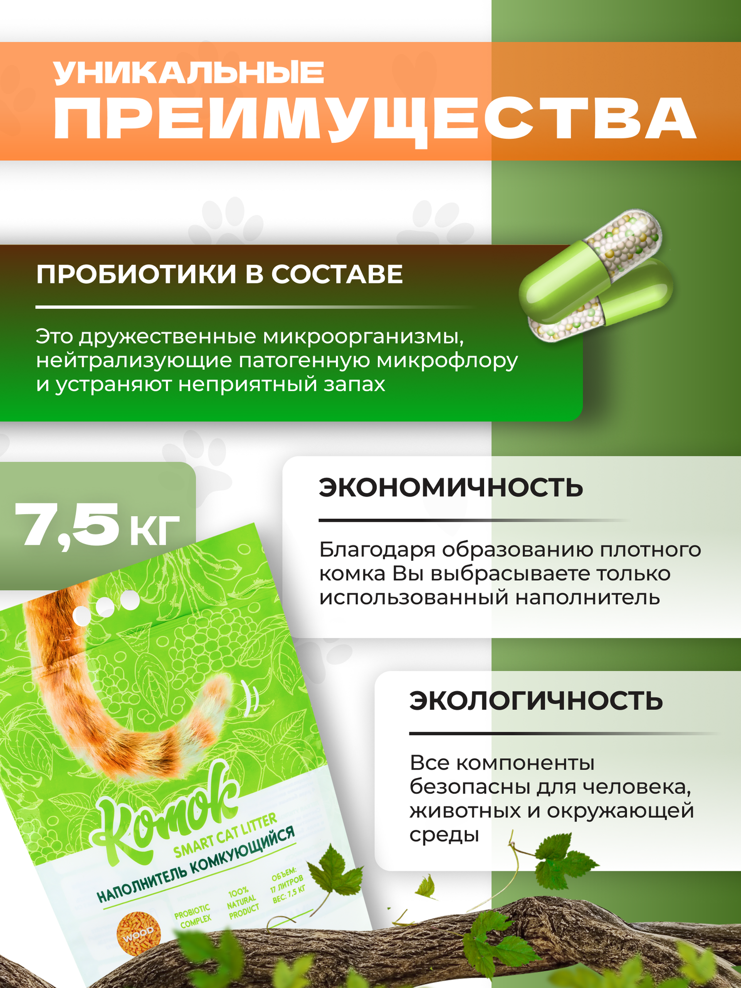 Купить Комкующийся биоразлагаемый наполнитель для лотков Комок TOFU Древесный 17 литров