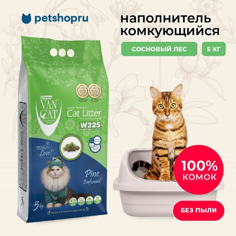 Van Cat комкующийся наполнитель с ароматом Соснового леса, без пыли, бентонит, пакет, (Pine Perfumed), 5 кг интересное:
