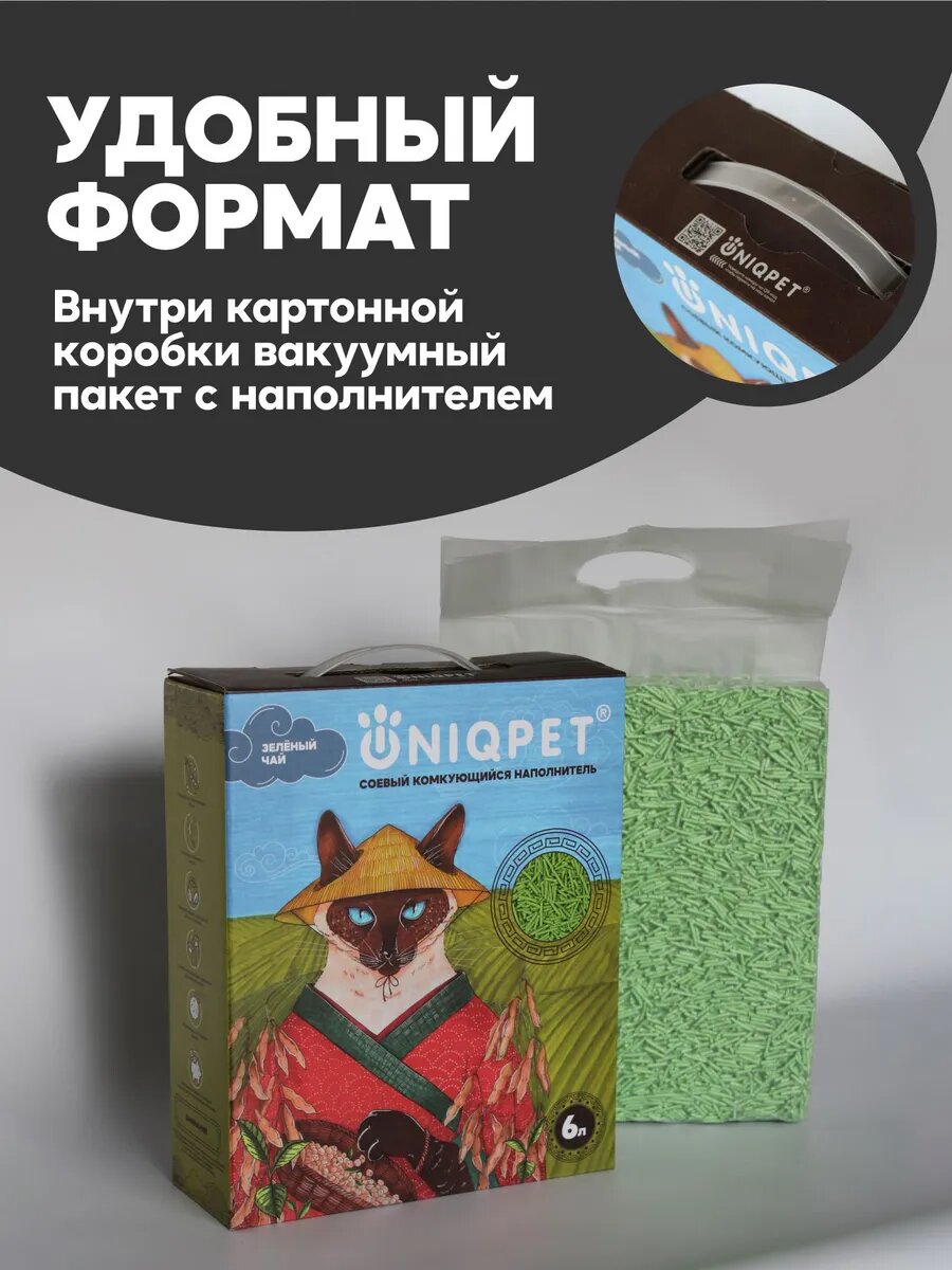 Соевый наполнитель UNIQPET для кошачьего туалета комкующийся, Зелёный чай, 6л интересное: