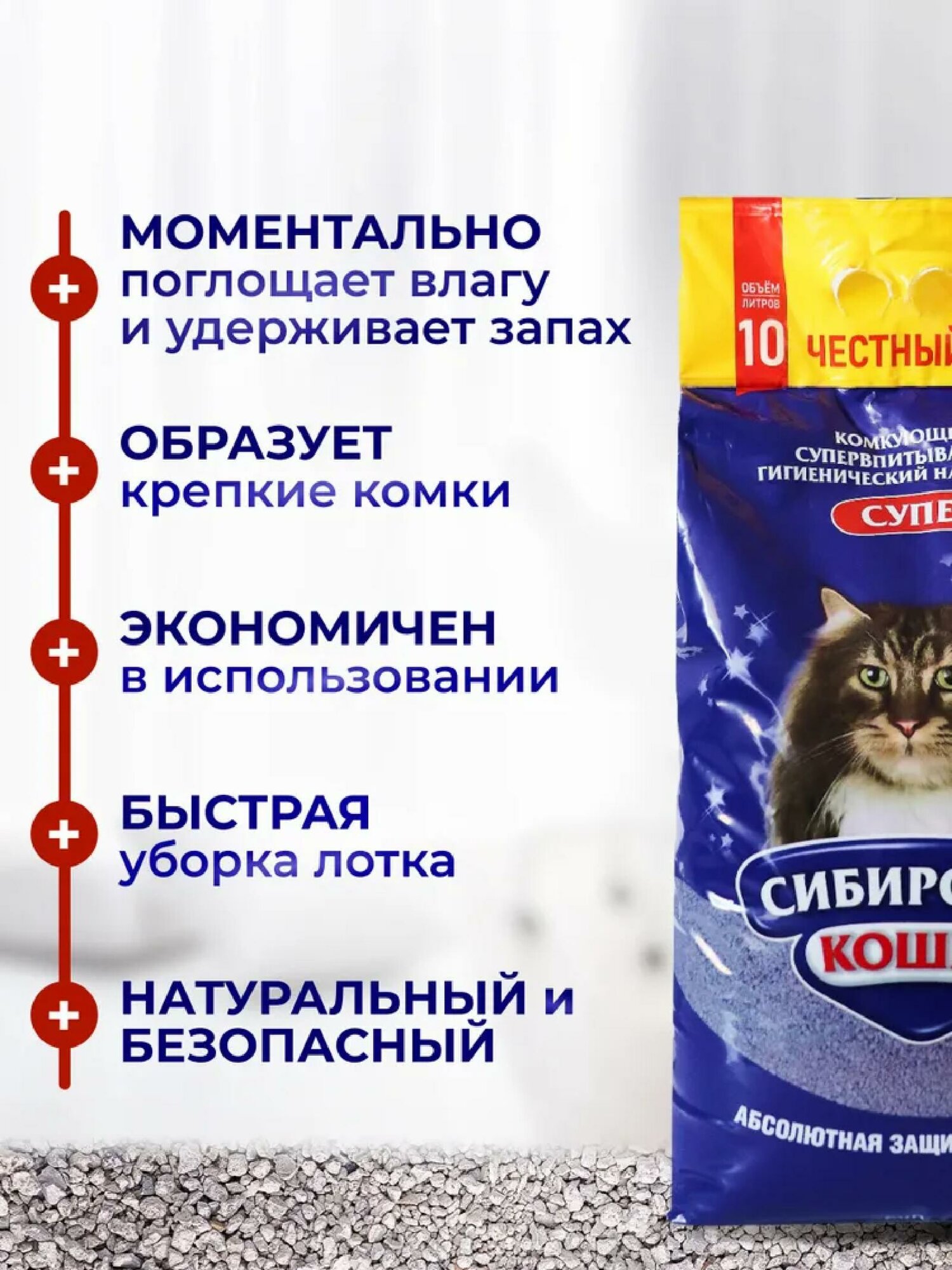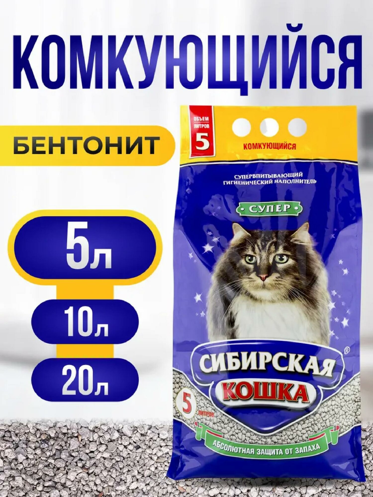 Сибирская кошка, комкующийся наполнитель "Супер", 10 л.