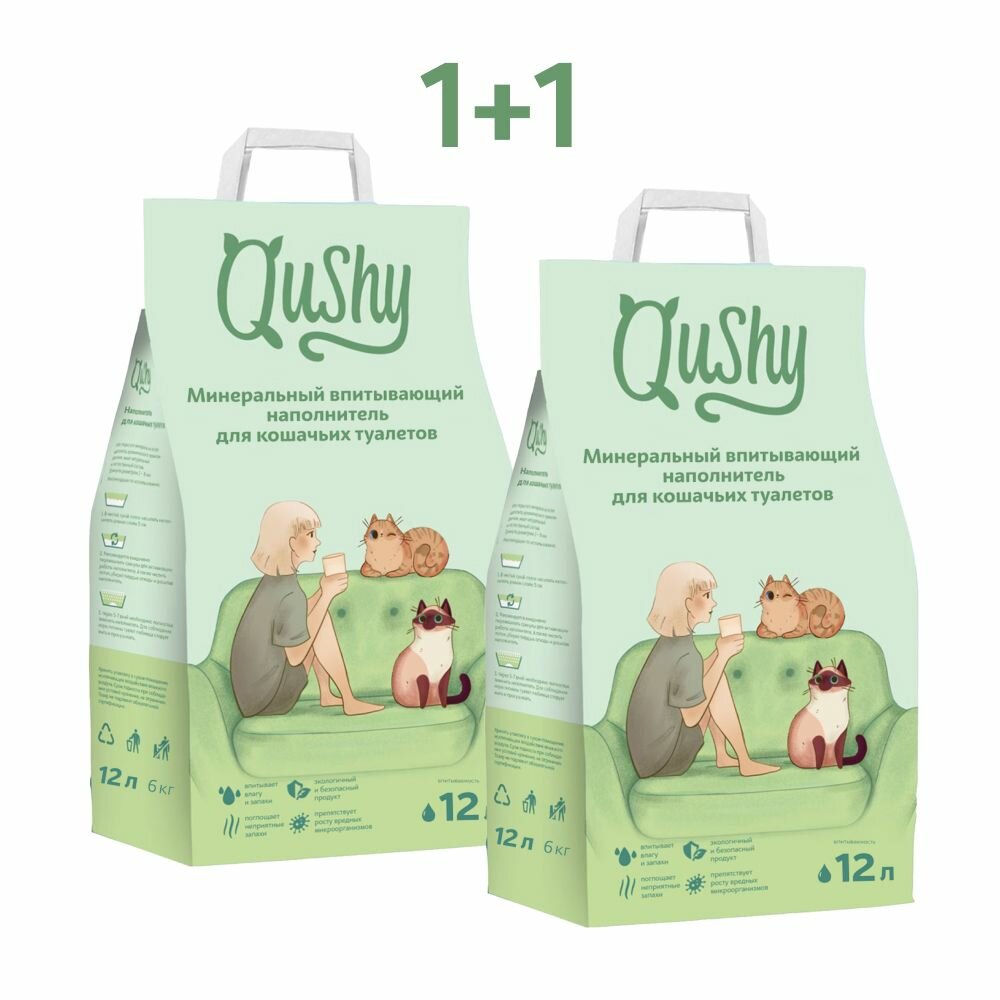 Qushy наполнитель для кошачьего туалета минеральный впитывающий 6 кг (12л)