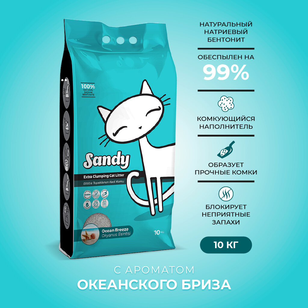 Наполнитель для кошачьих туалетов Sandy Ocean Breeze комкующийся, бентонитовый с ароматом океанского . интересное: