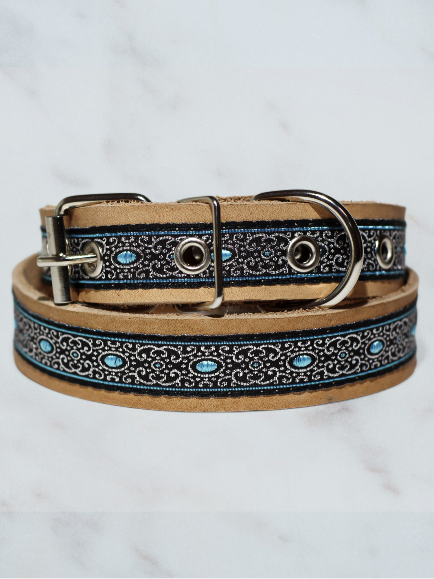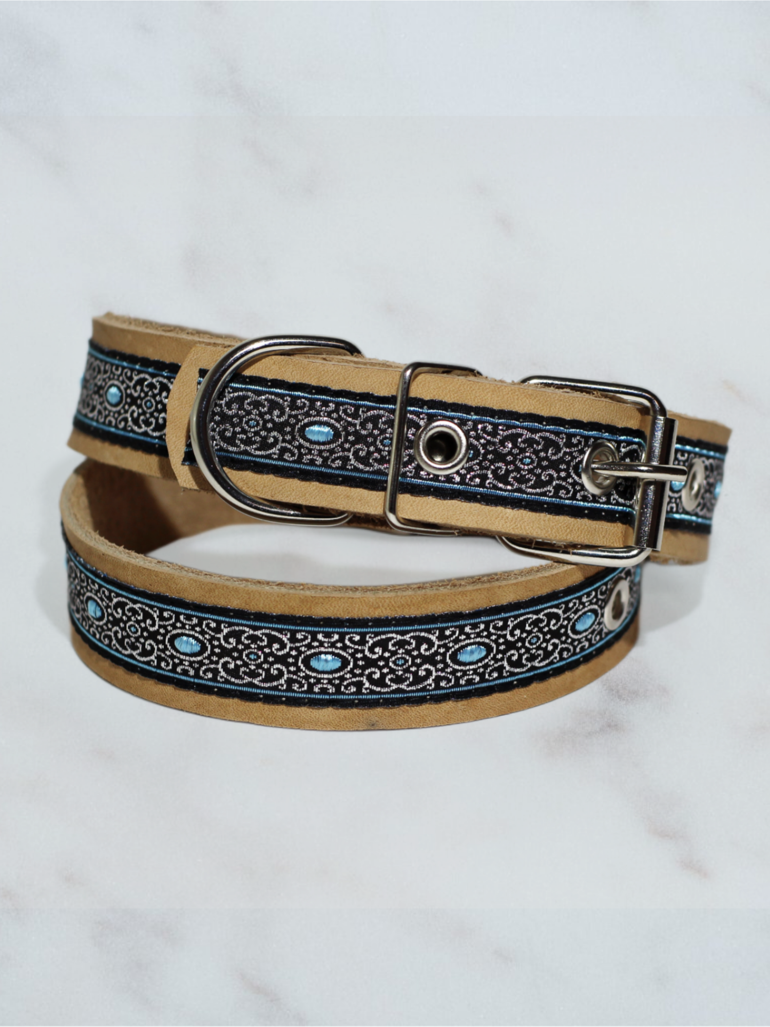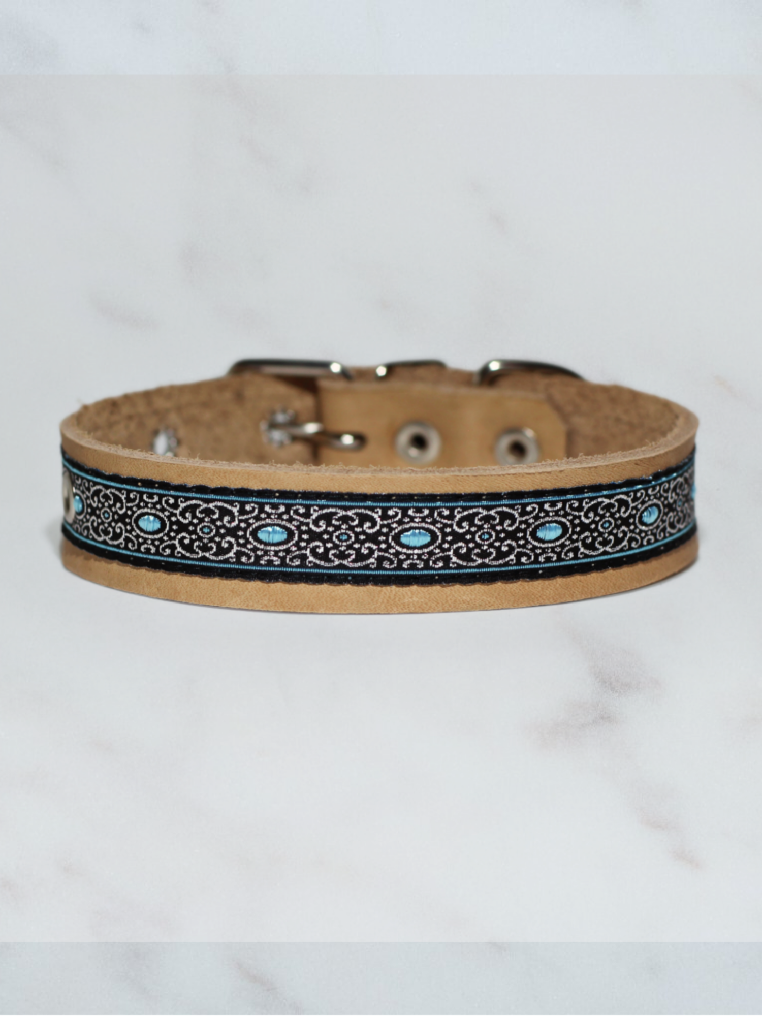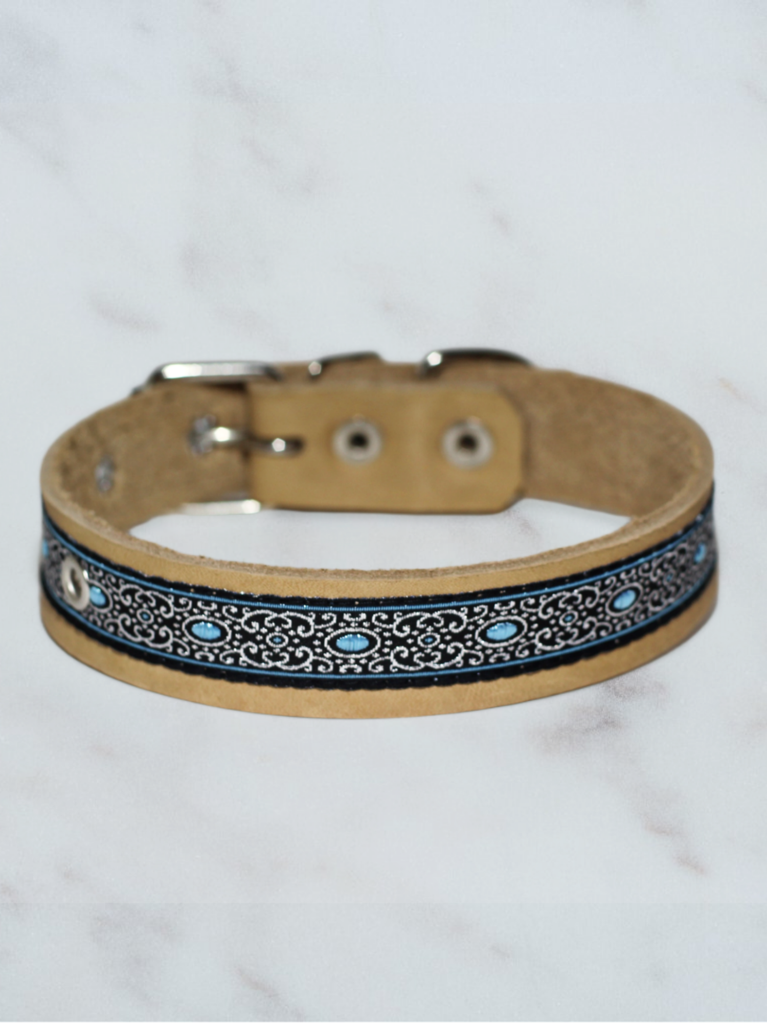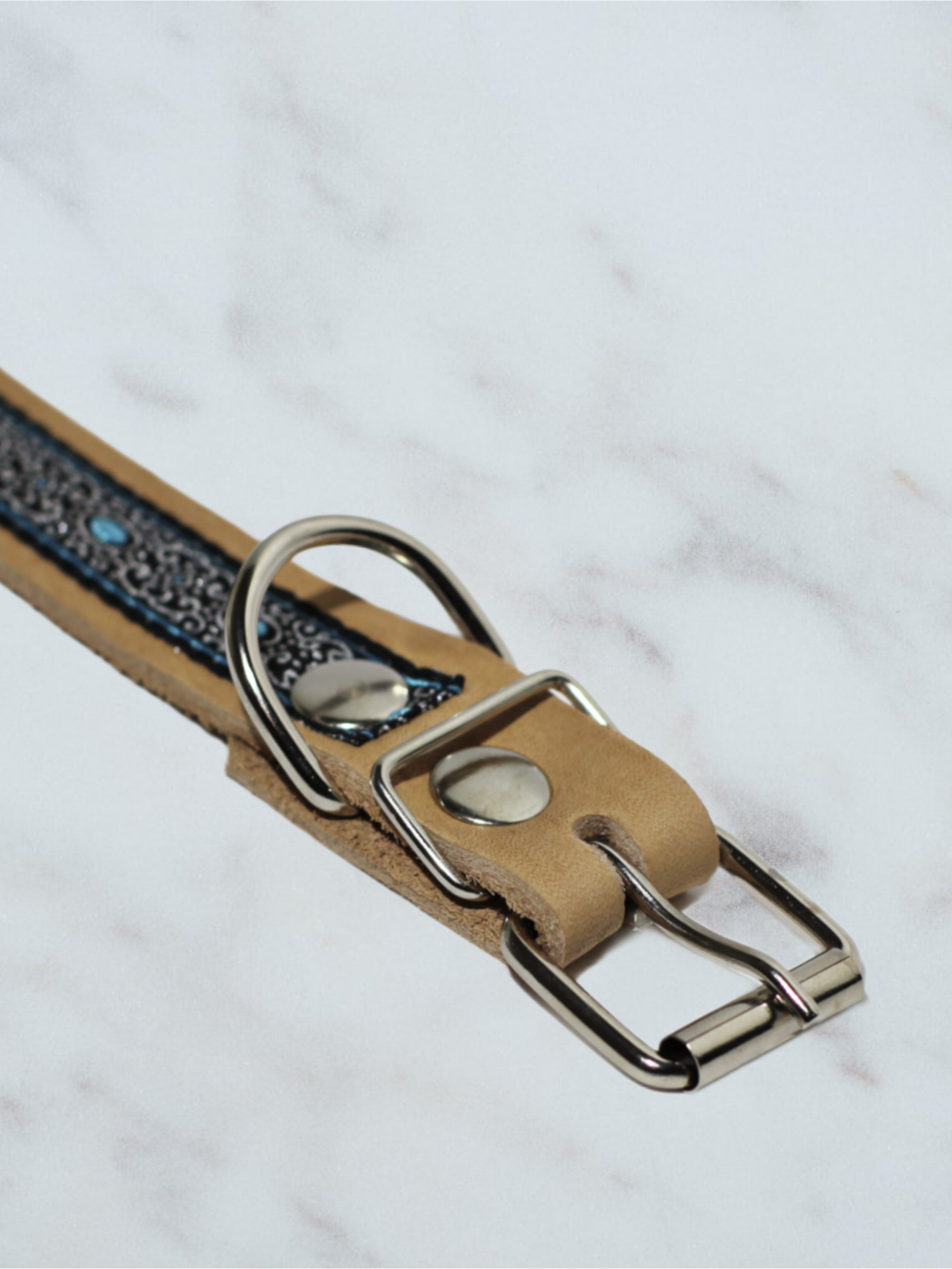 Ошейник для собак кожаный декоративный с жаккардом, обхват 23-34 см, M 40см, бежевый