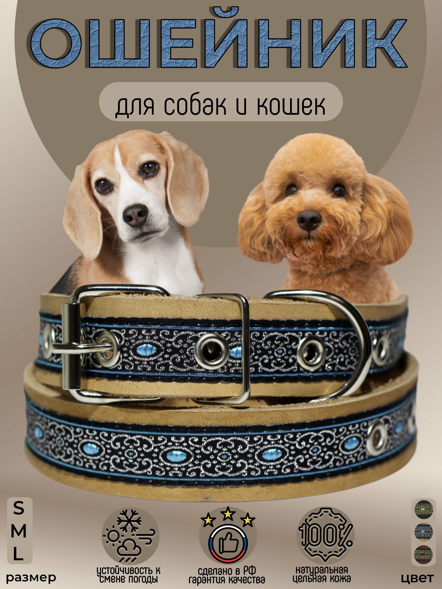 Ниже Вы можете прочитать отзывы на Ошейник для собак кожаный декоративный с жаккардом, обхват 28-38 см, L 45см, бежевый, ознакомится с подробными характеристиками, посмотреть интересные обзоры и фотографии на Ошейник для собак кожаный декоративный с жаккардом, обхват 28-38 см, L 45см, бежевый.