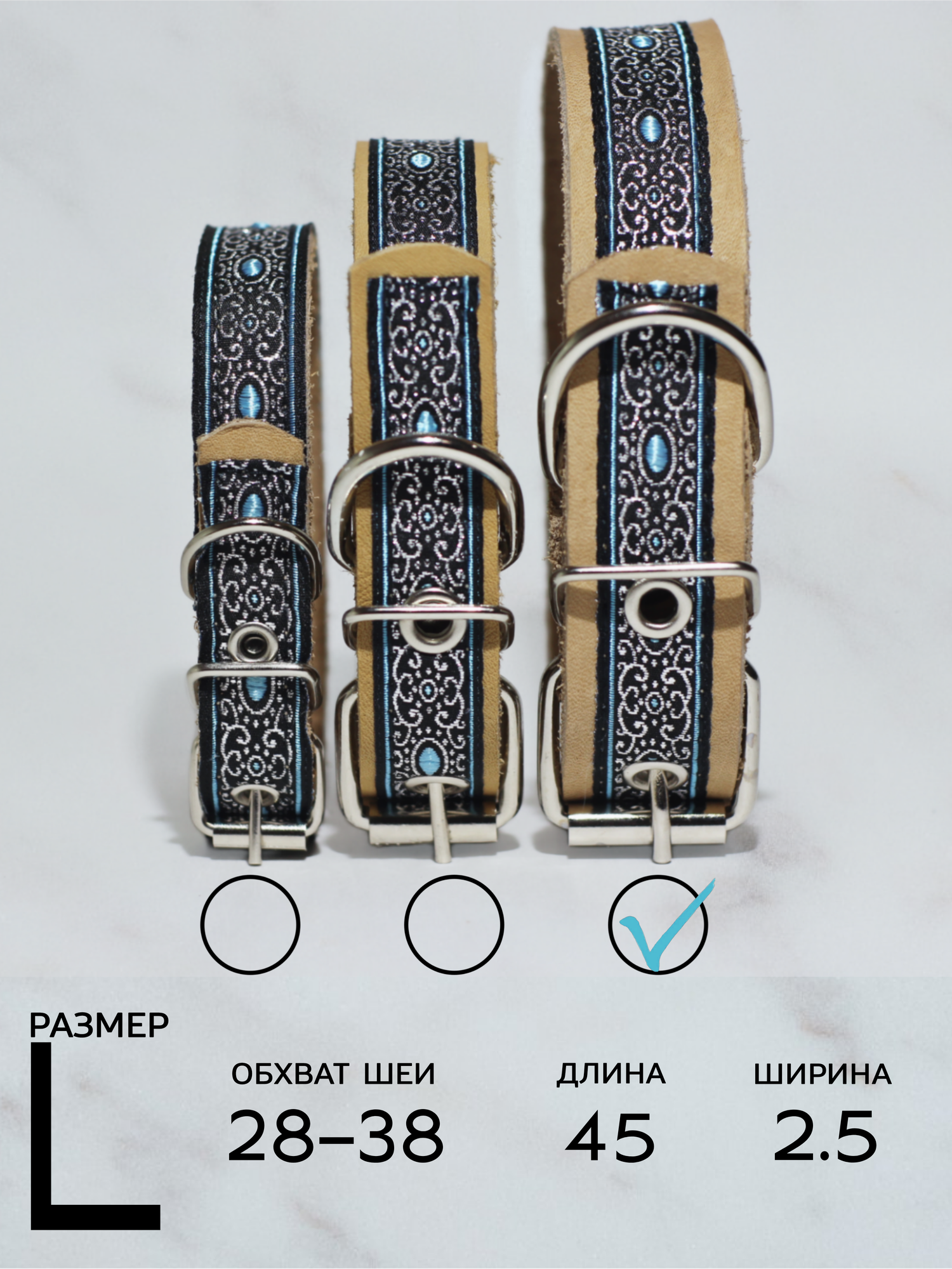 СохранитьОшейник для собак кожаный декоративный с жаккардом, обхват 28-38 см, L 45см, бежевый интересное: