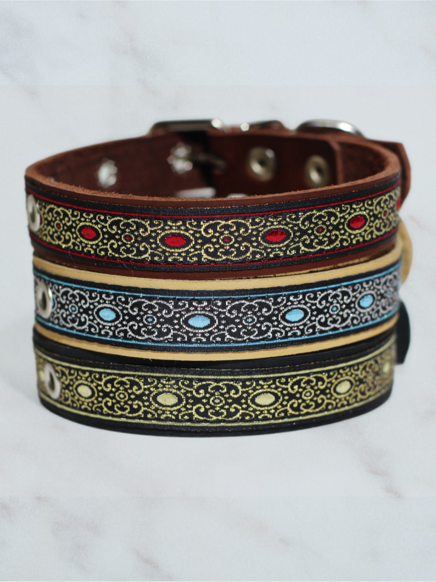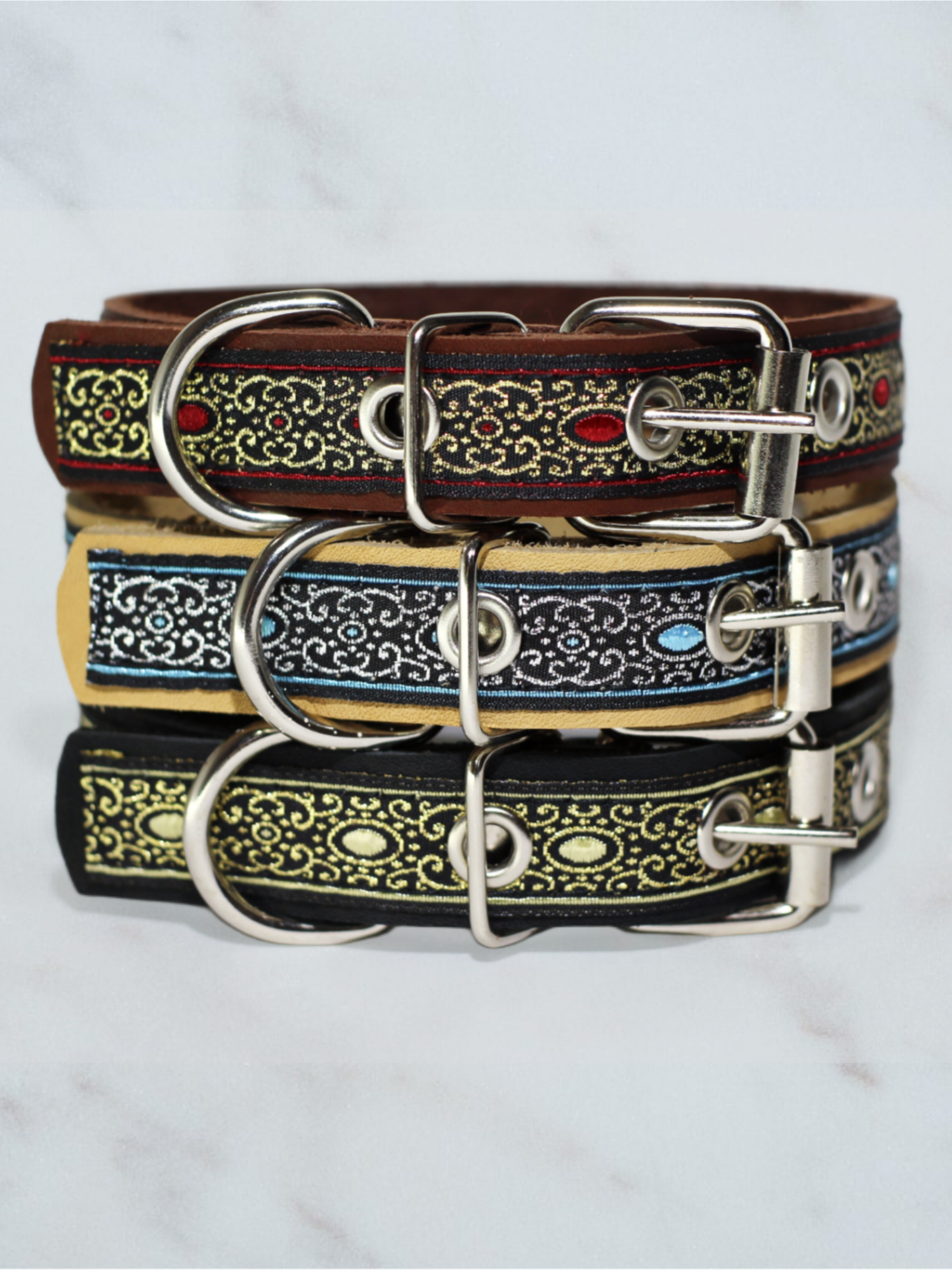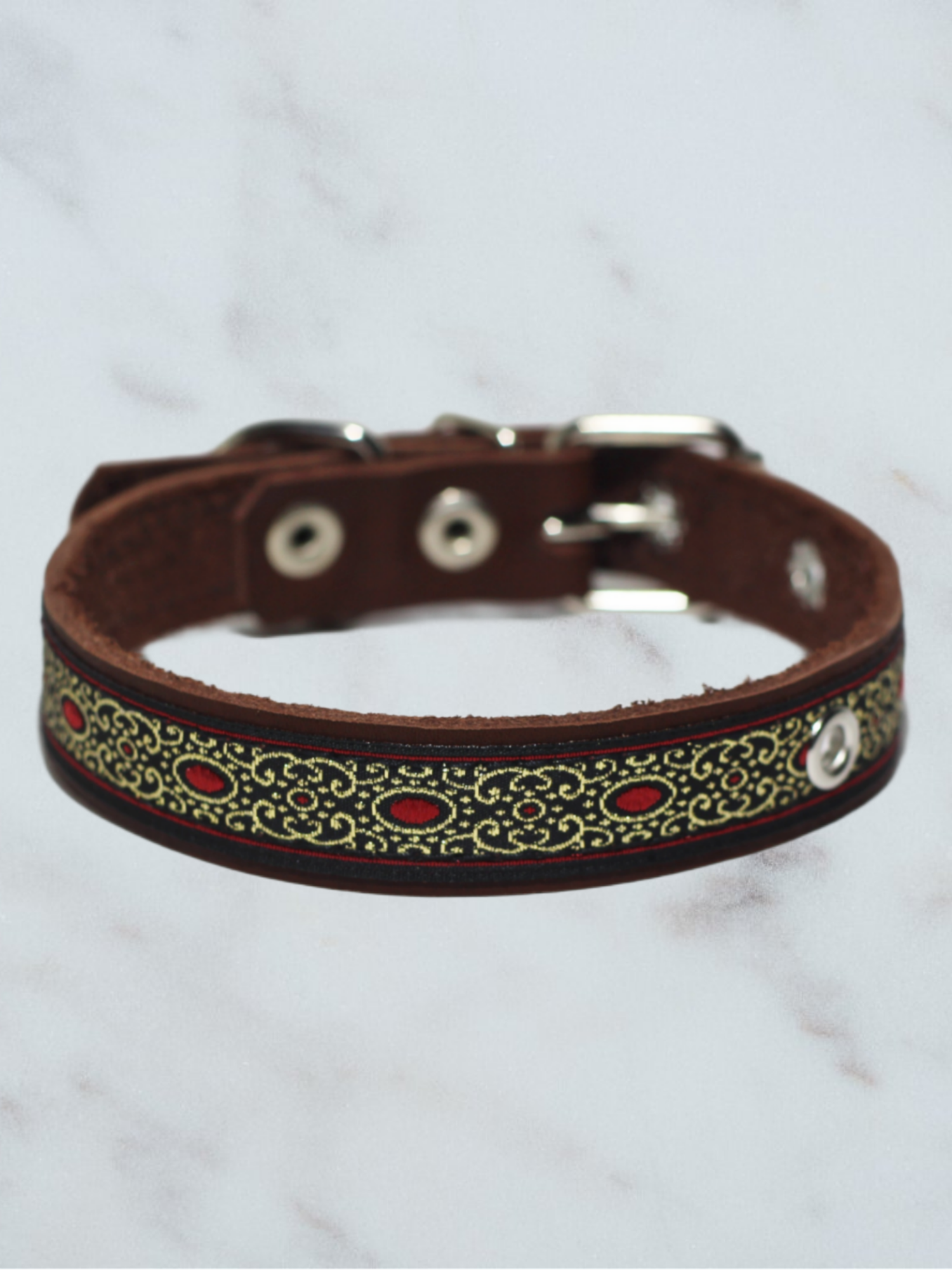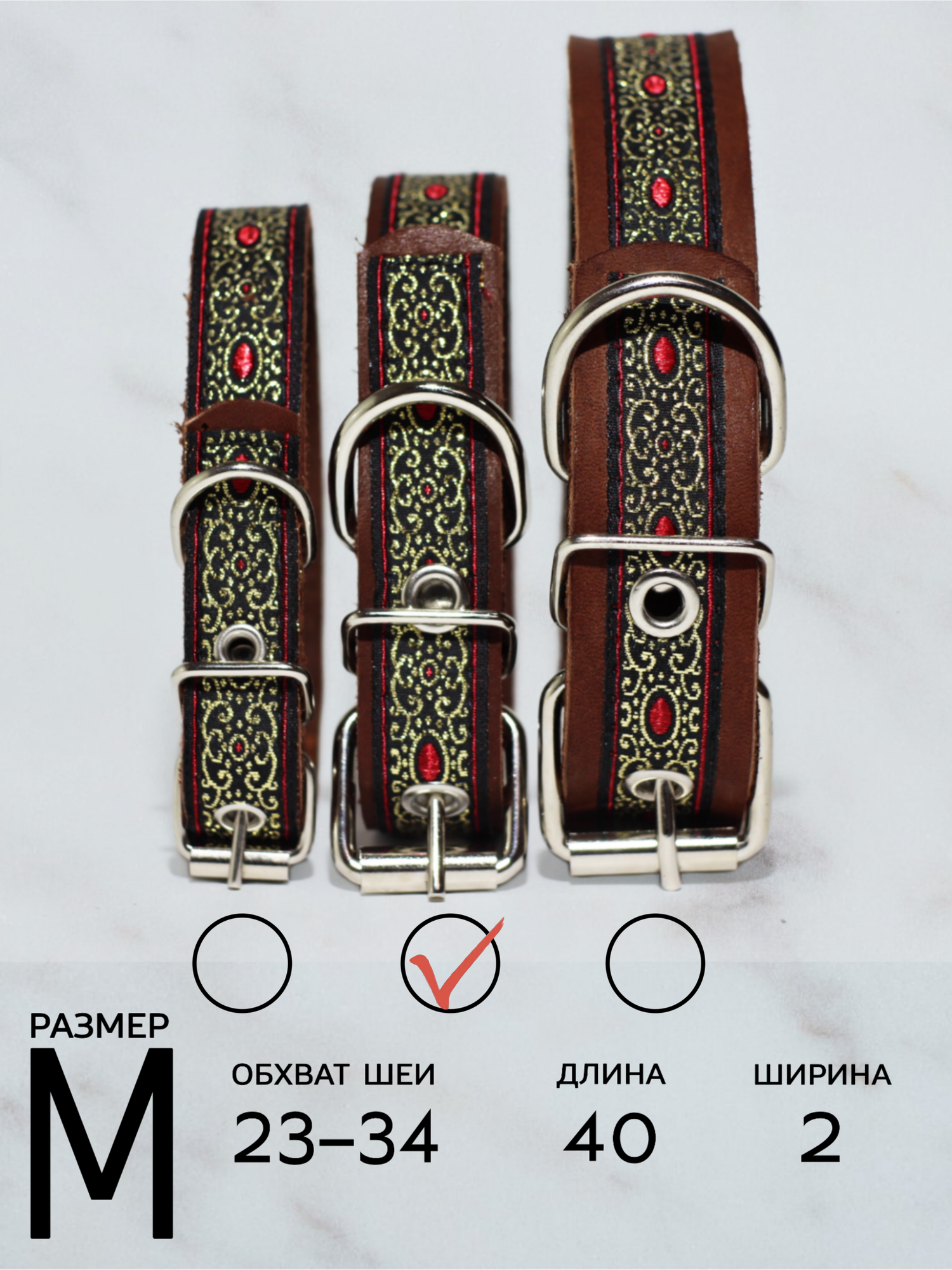 Купить Ошейник для собак кожаный декоративный с жаккардом, обхват 23-34 см, M 40см, коричневый