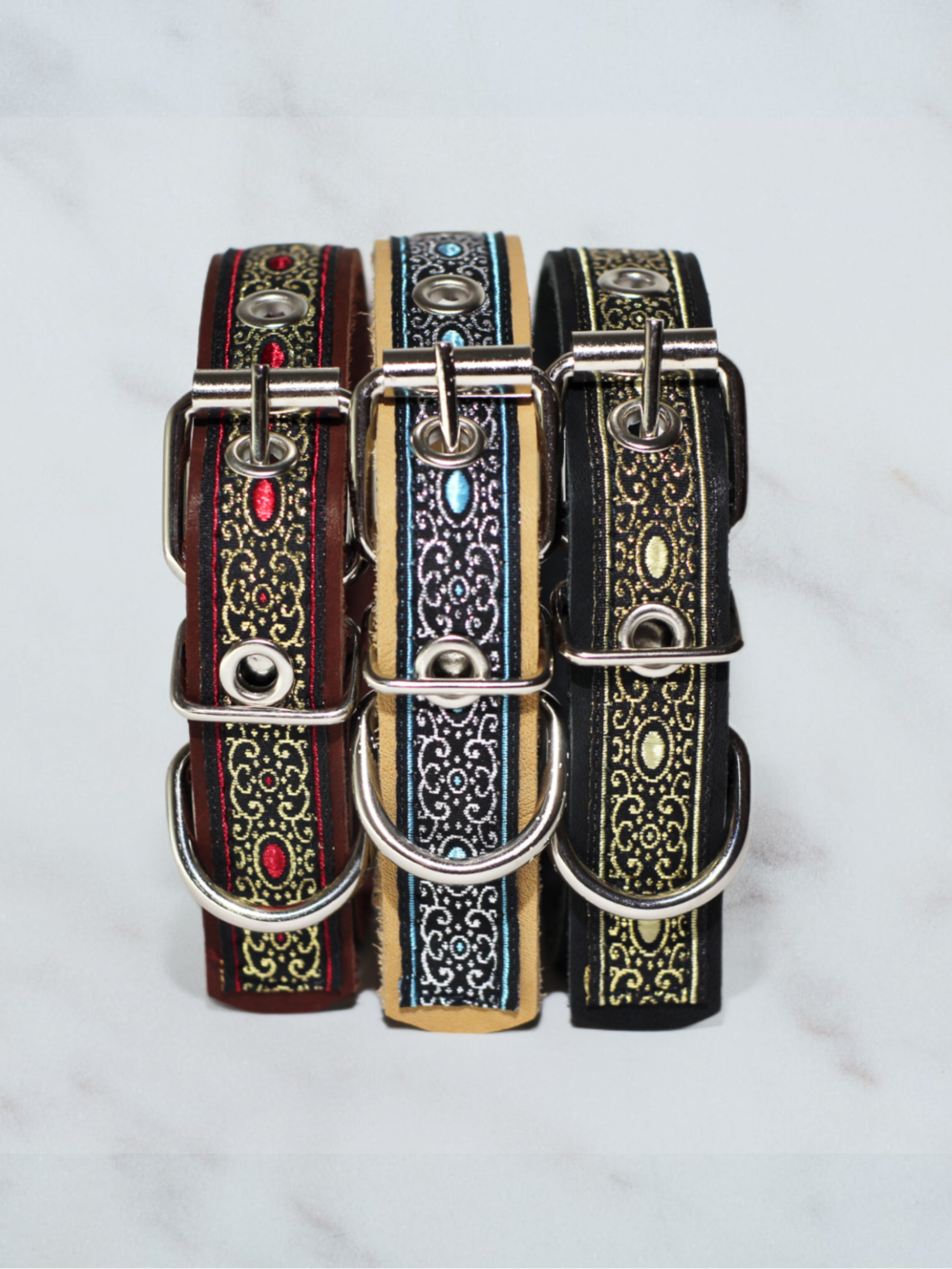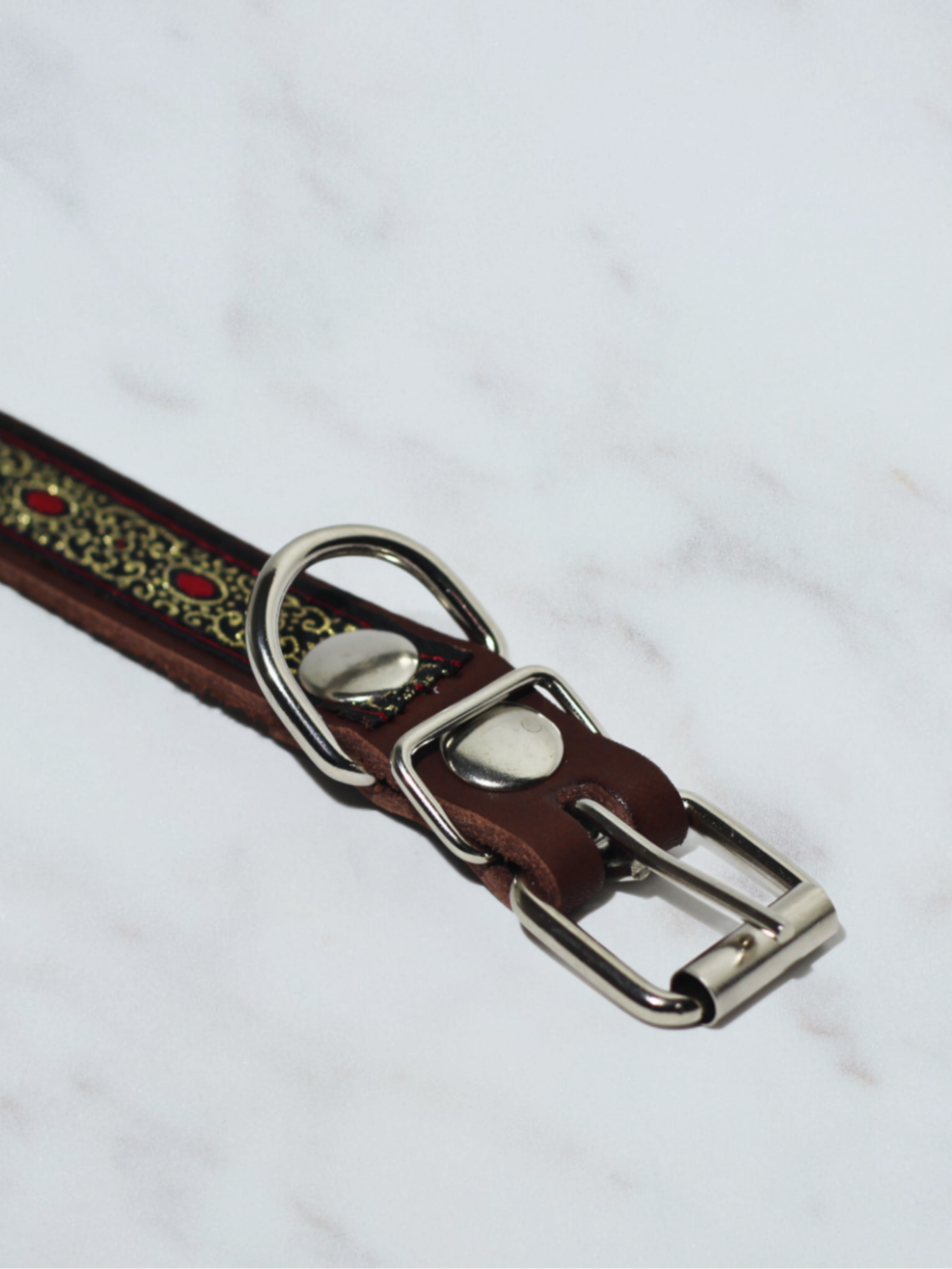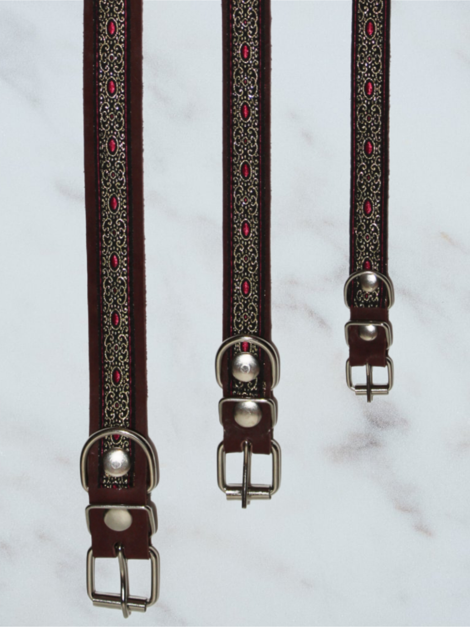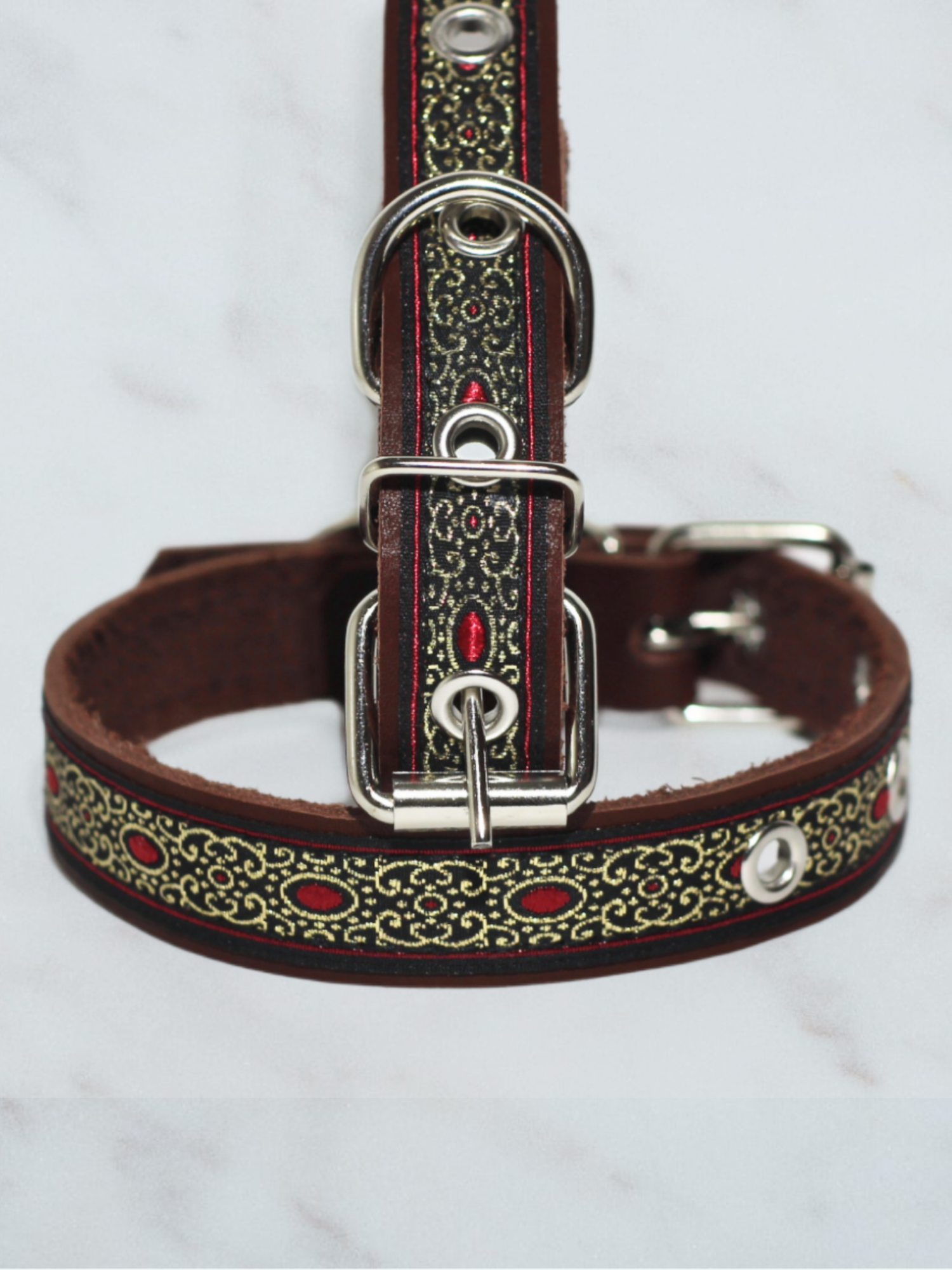 Купить Ошейник для собак кожаный декоративный с жаккардом, обхват 23-34 см, M 40см, коричневый