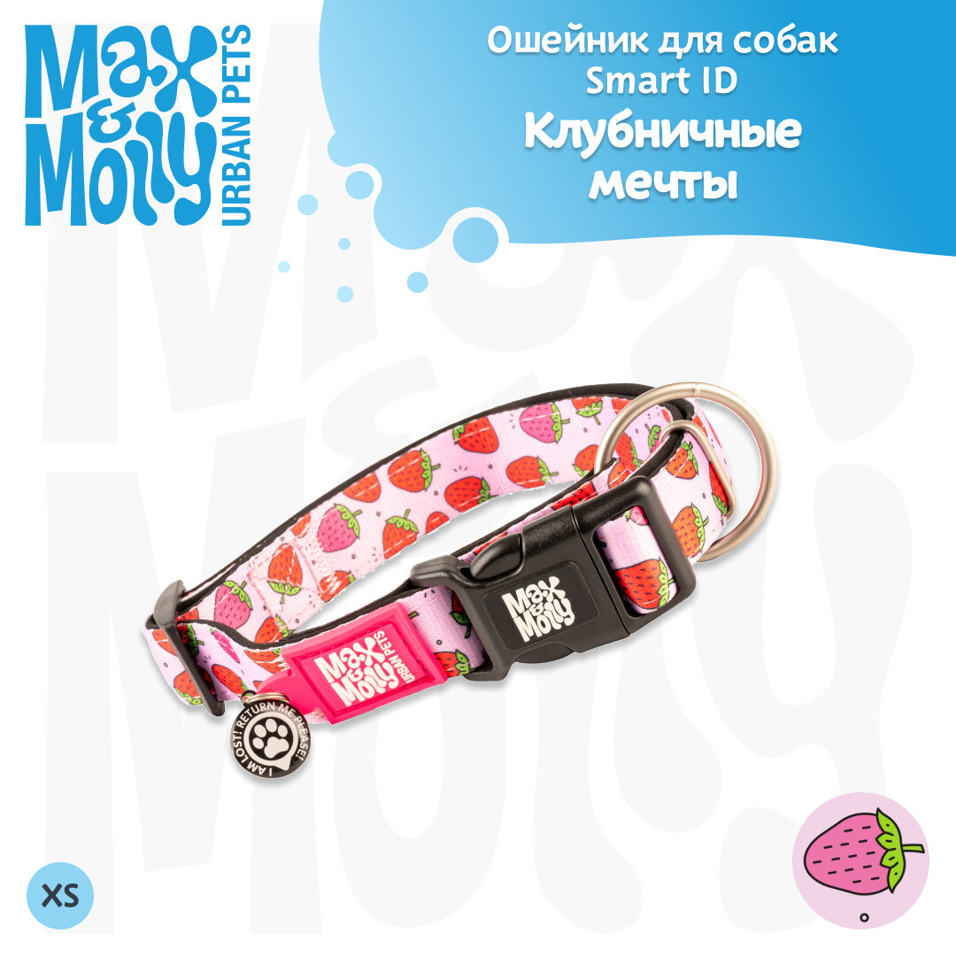 Ошейник для собак Smart ID, размер XS, Клубничные мечты, Max&Molly
