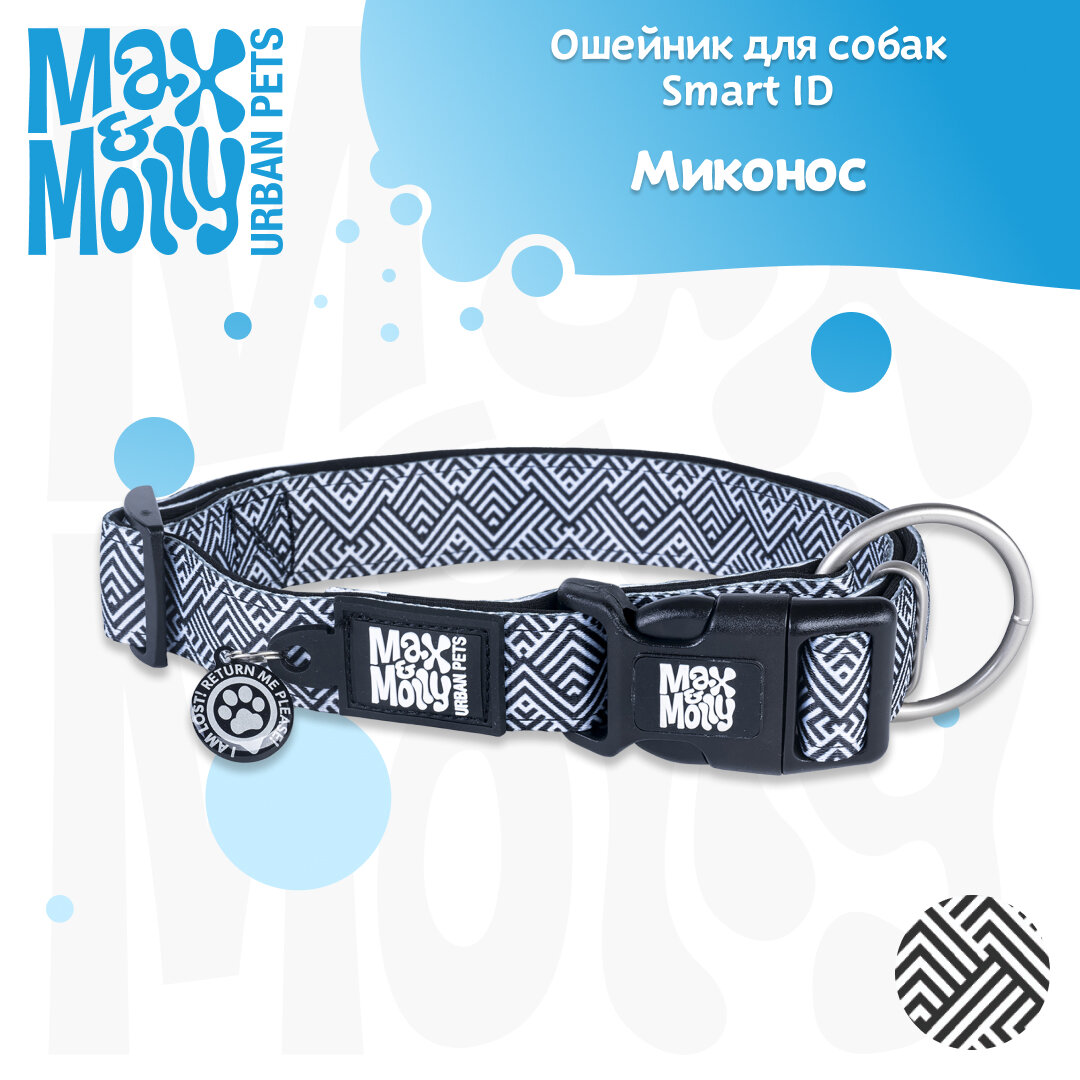 Ошейник для собак Smart ID, размер M, Миконос черный, Max&Molly