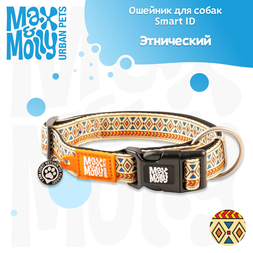Ошейник для собак Smart ID, размер M, Этнический, Max&Molly