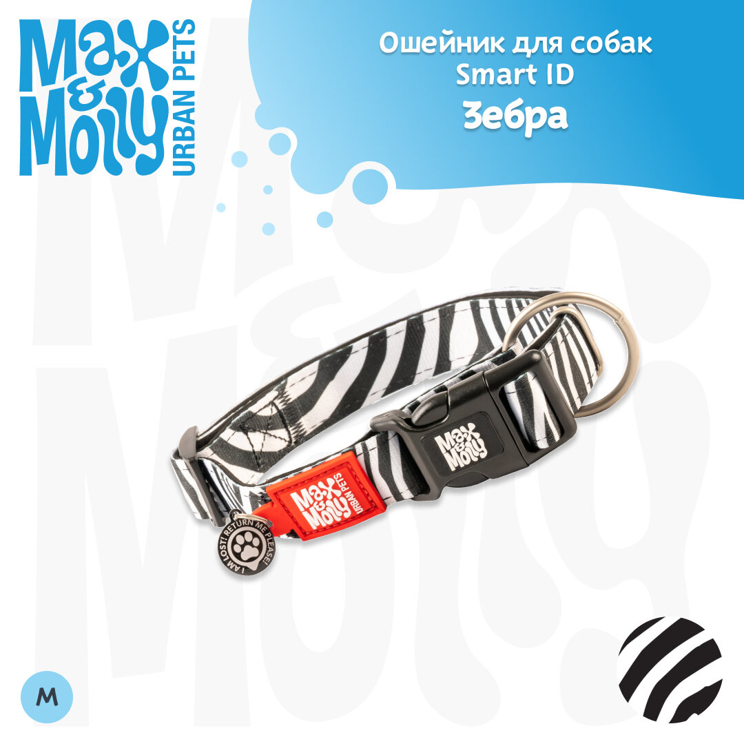 Ошейник для собак Smart ID, размер M, Волшебная Зебра, Max&Molly