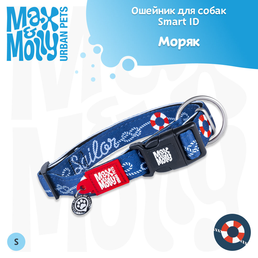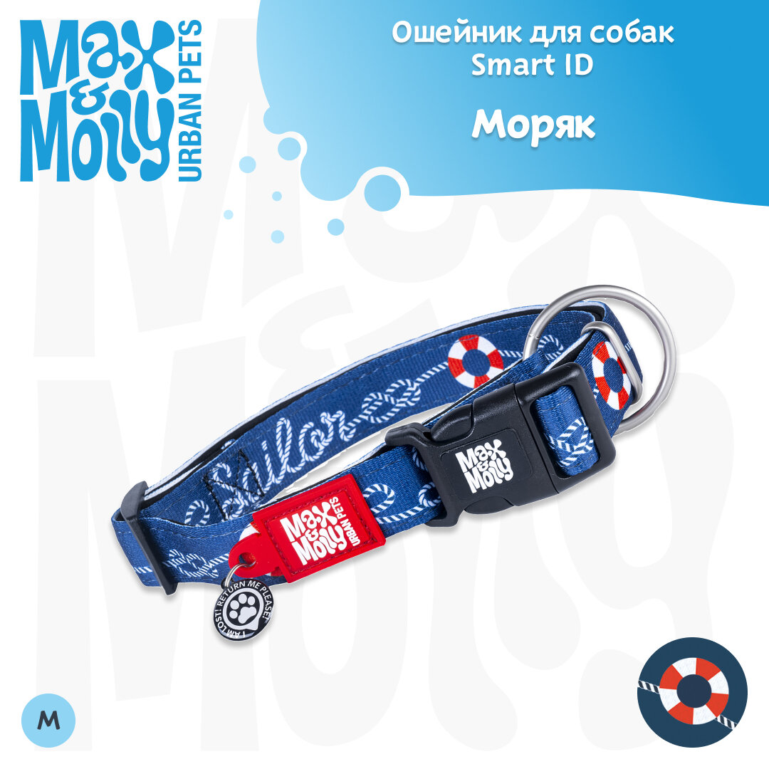 Купить Ошейник для собак Smart ID, размер M, Моряк, Max&Molly