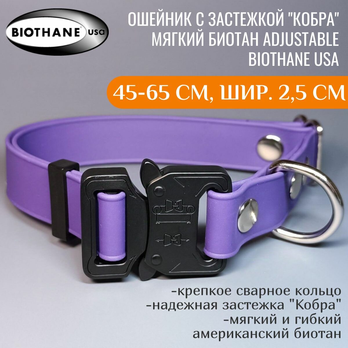 СохранитьR-Dog Ошейник из мягкого биотана (Biothane USA), металлическая пряжка "Кобра", цвет спелая слива, длина 45-65 см, ширина 2,5 см интересное: