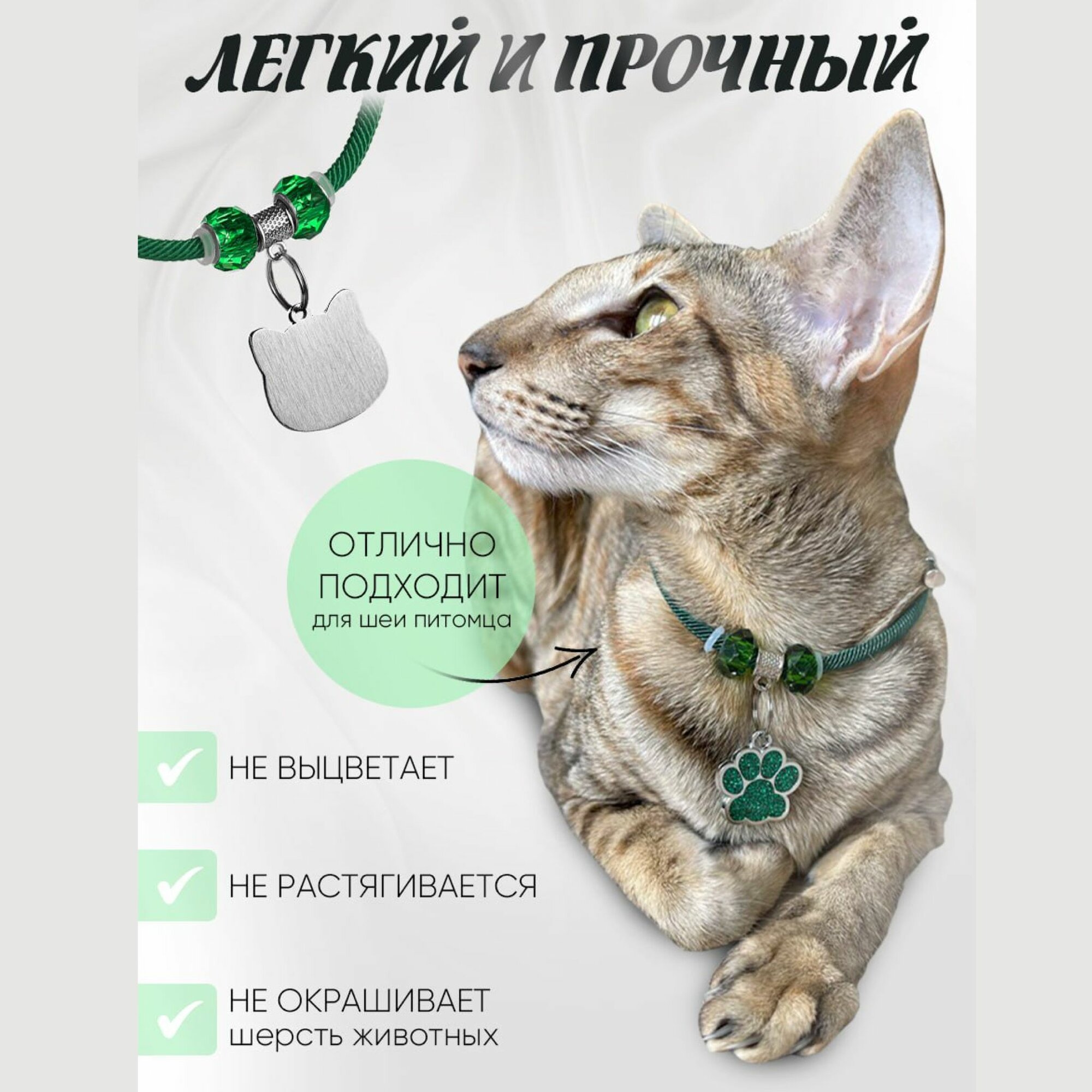 СохранитьОшейник с адресником для кошек и собак мелких пород "Балуем котика", зеленый. интересное: