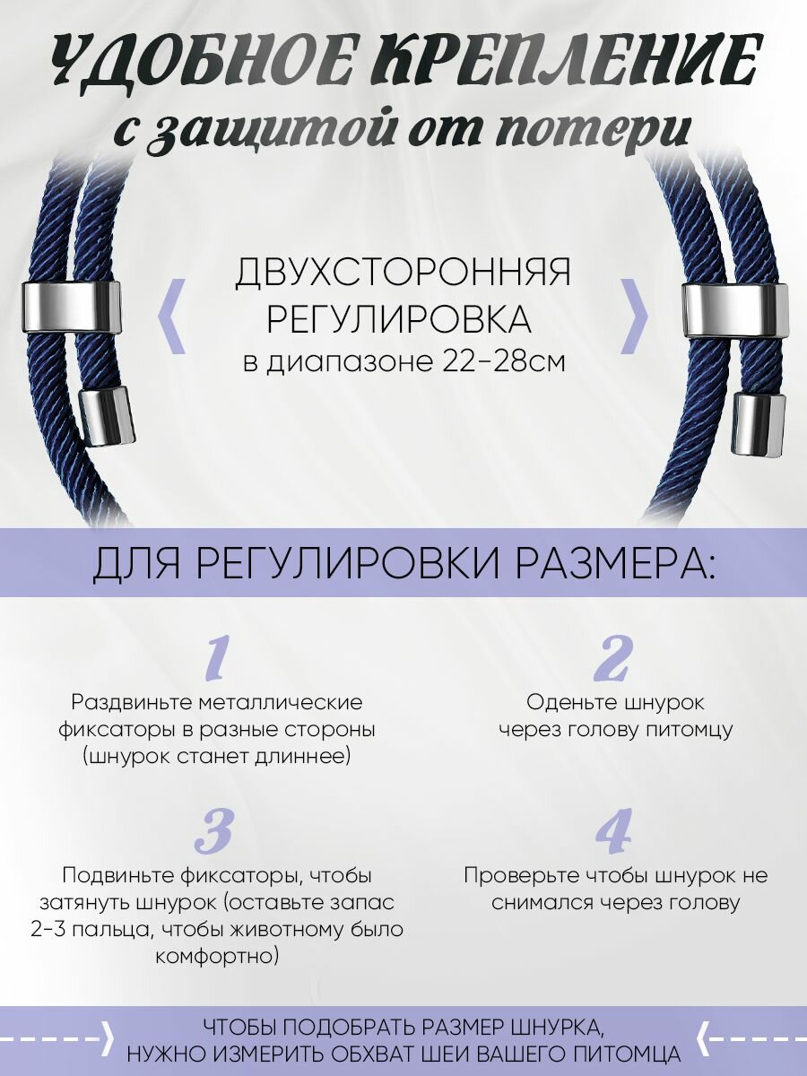 Ошейник с адресником для кошек и собак, миланский шнурок, 22-28 см