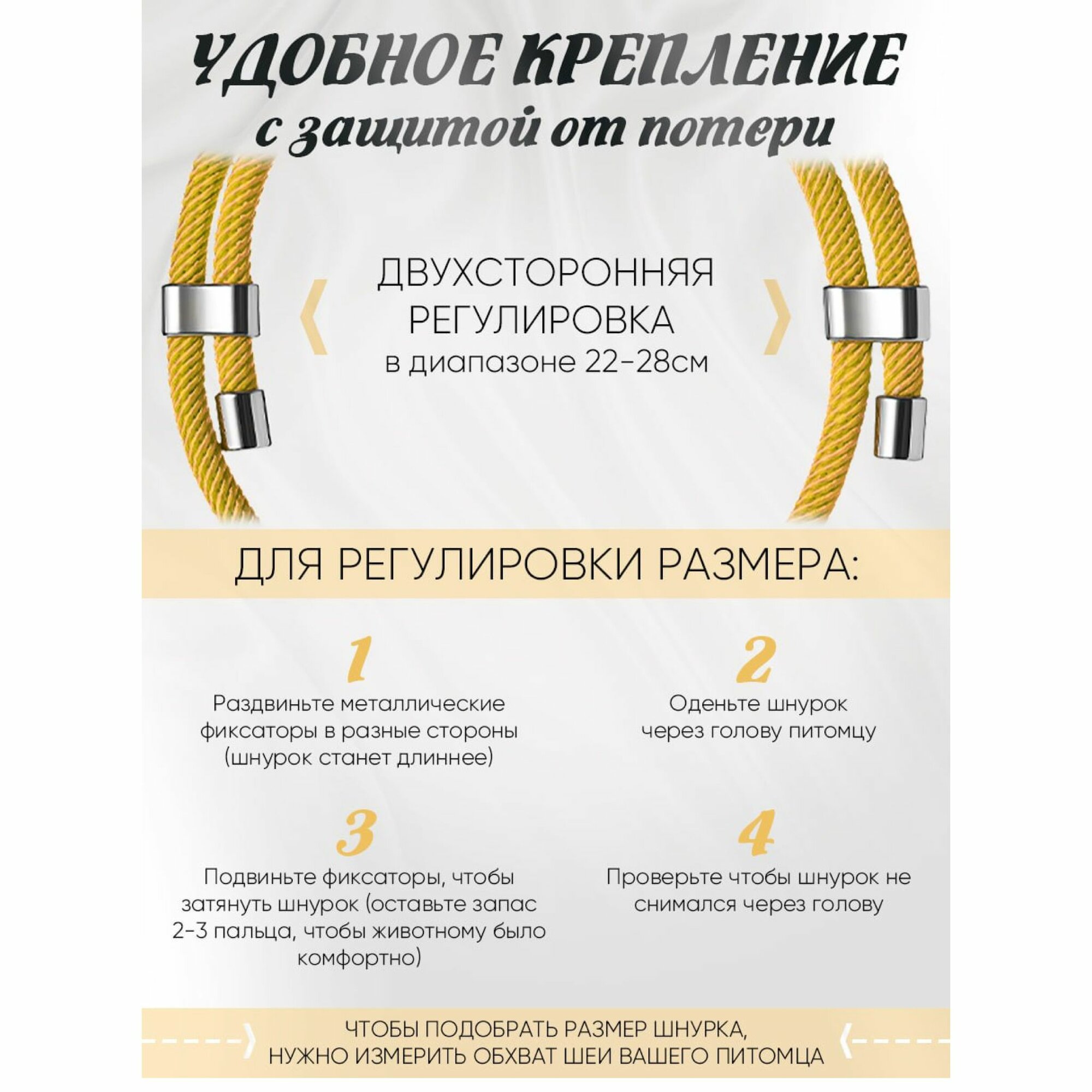 Ошейник с адресником для кошек и собак, миланский шнурок, 22-28 см